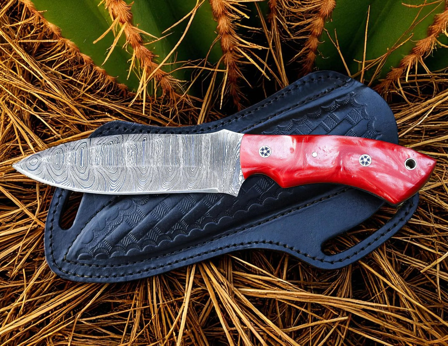 Custom Handmade Damascus Steel Hunting Bowie Knife With Leather Sheath