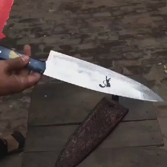 15'' Handmade Damascus Chef Knife: Anime Pikachu Style Handle, Kitchen Knife Gift