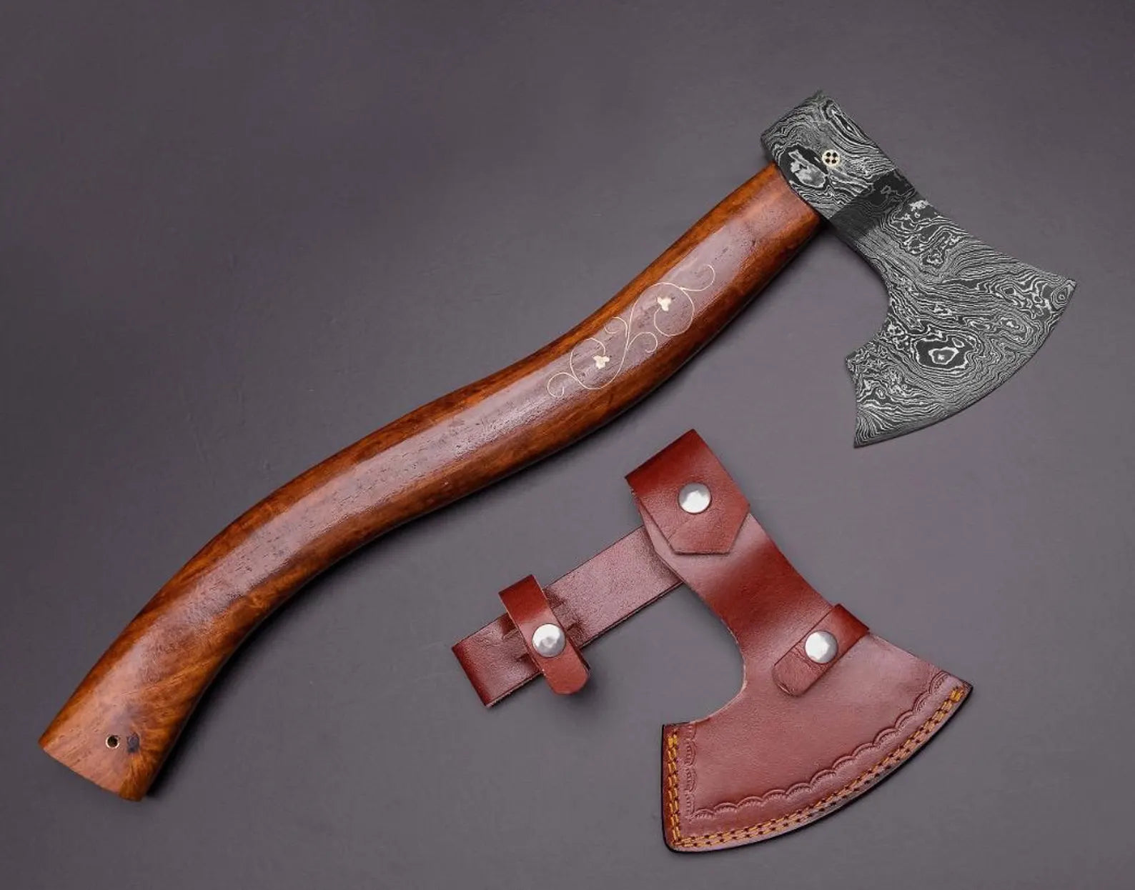 Axe, Custom Gift Forged damascus Steel VIKING AXE with rose Wood Shaft
