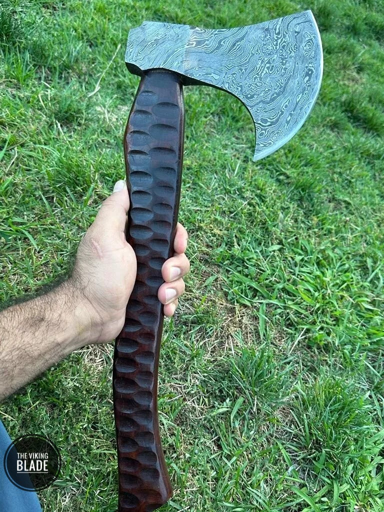 CUSTOM HAND-FORGED DAMASCUS STEEL CAMPING HATCHET TOMAHAWK AXE
