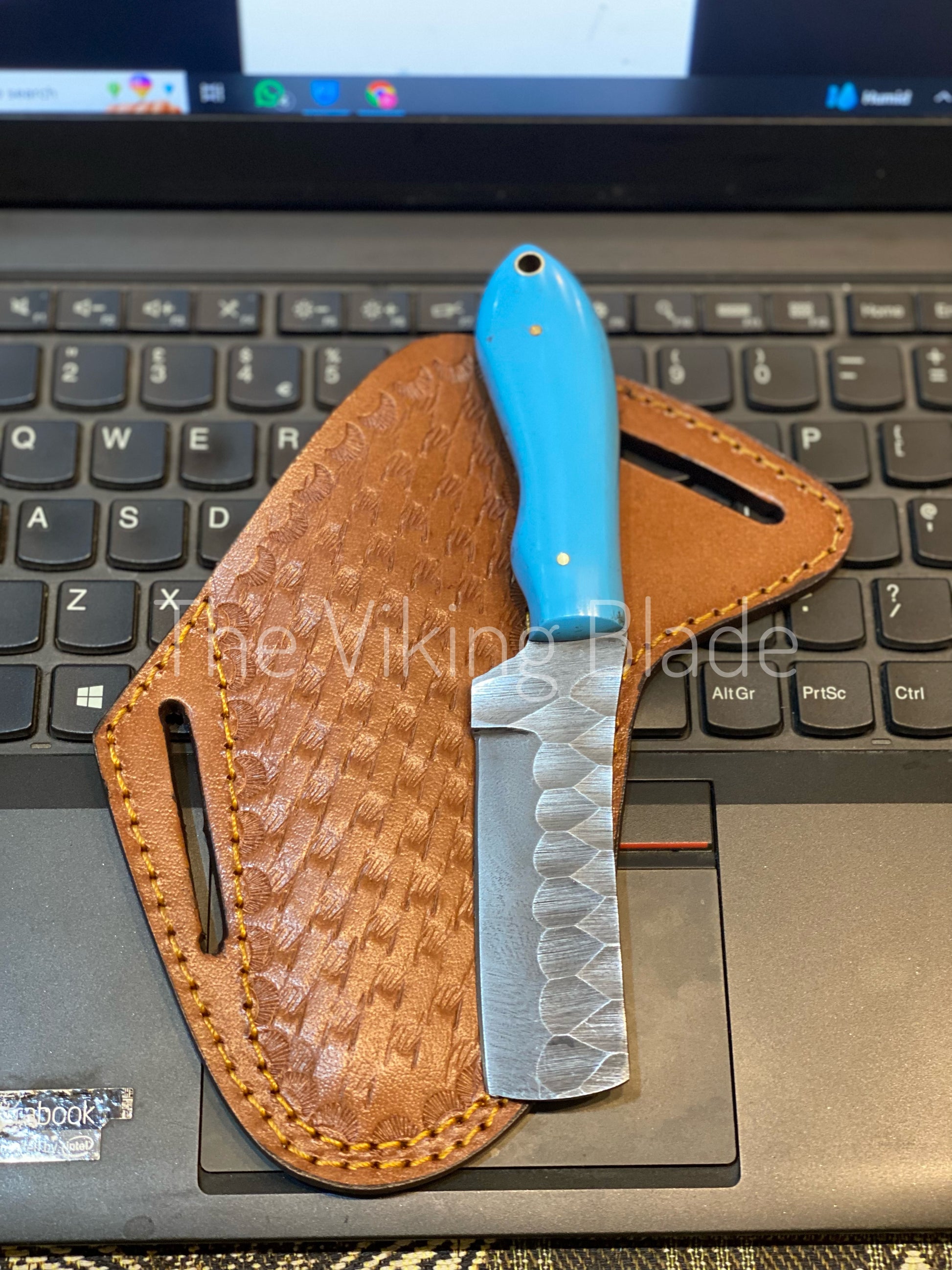 Custom Handmade Carbon Steel Bull Cutter Knife With Leather Sheath