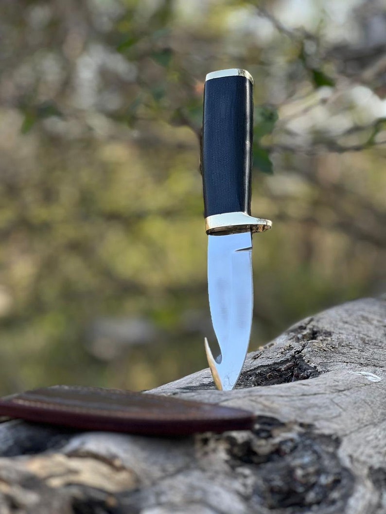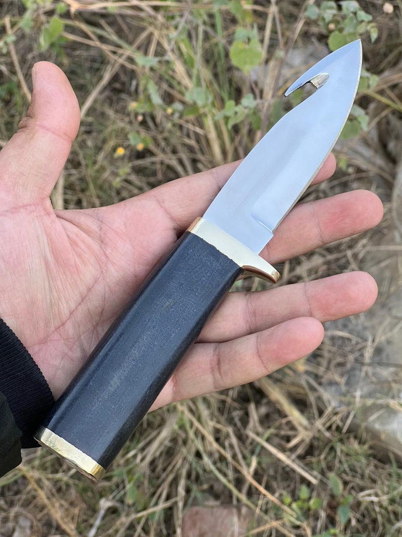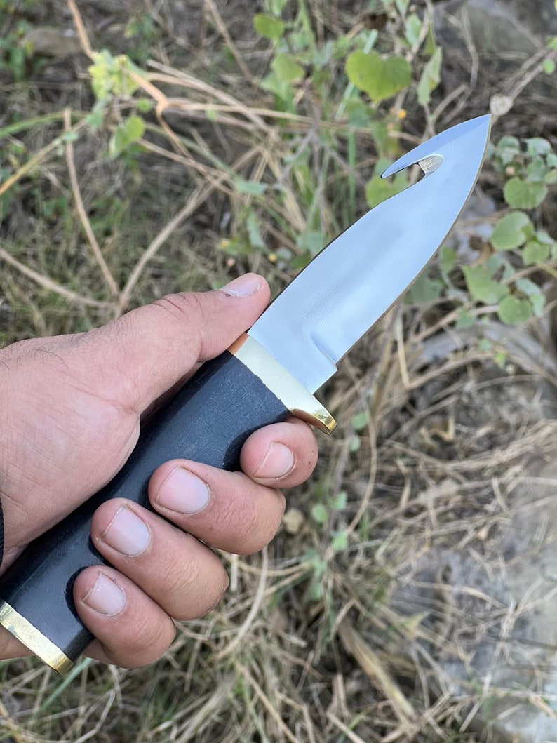 Custom Handmade Carbon Steel Gut Hook Knife With Leather Sheath