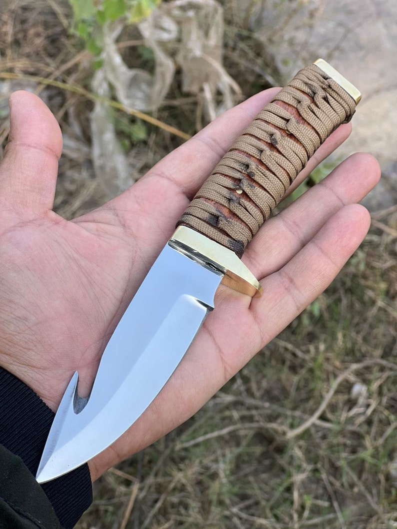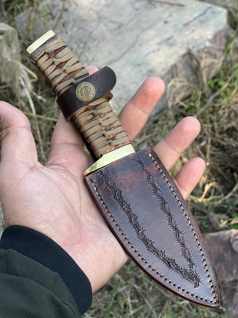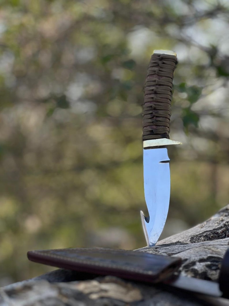 Custom Handmade Carbon Steel Gut Hook Skinning Hunting Knife With Leather Sheath