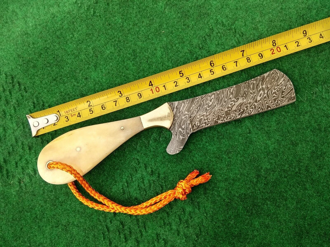 Custom Handmade Cowboy Knife 8" Damascus EDC Hunting Bone Handle Bull Cutter