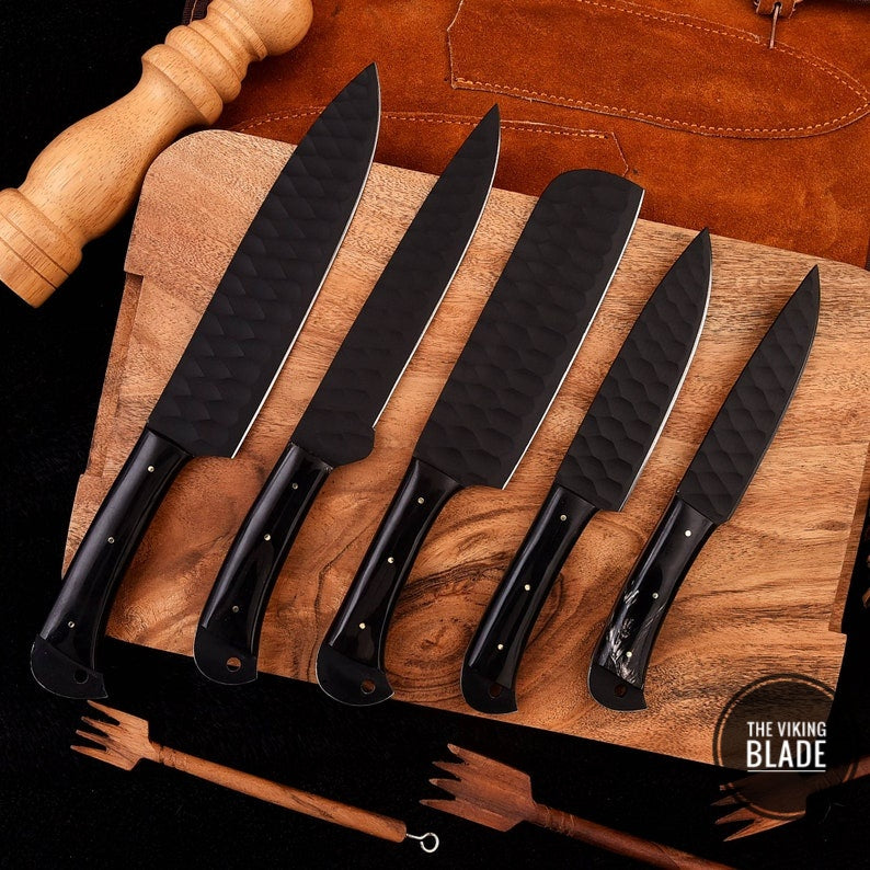 Custom Handmade D2 Steel Chef Kitchen Knives Set With Leather Roll Kit