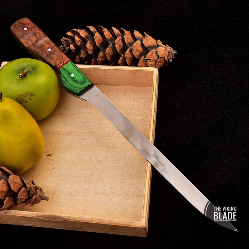 D2 STEEL GREEN EXOTIC WOOD FILLET KNIFE, CUSTOM HAND MADE, RAZOR SHARP