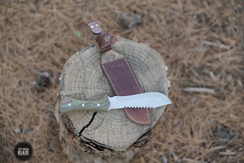 Custom Handmade D2 Steel Hunting Knife With Leather Sheath