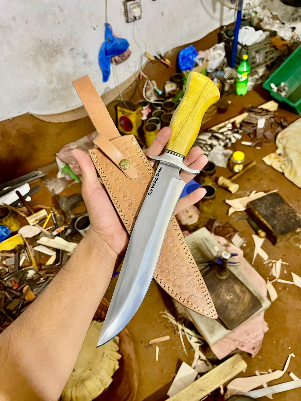 CUSTOM HANDMADE D2 STEEL HUNTING KNIFE WITH LEATHER SHEATH