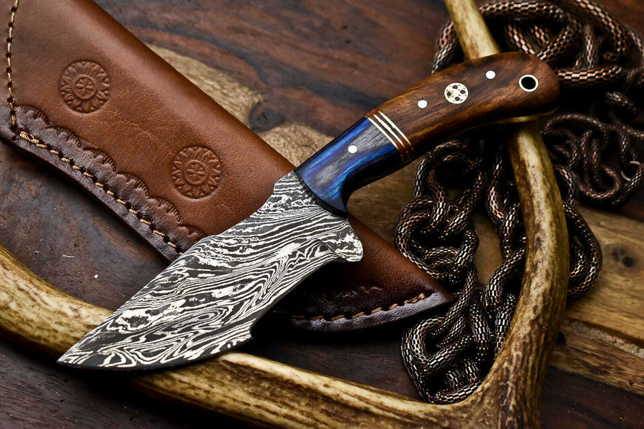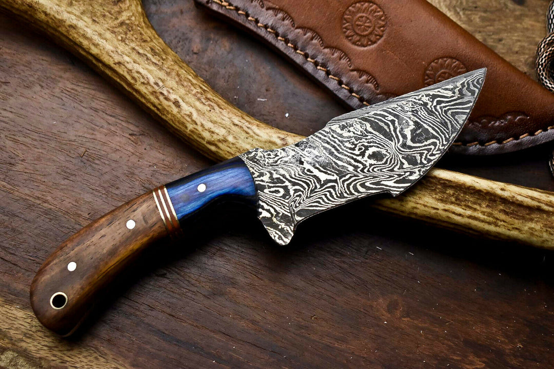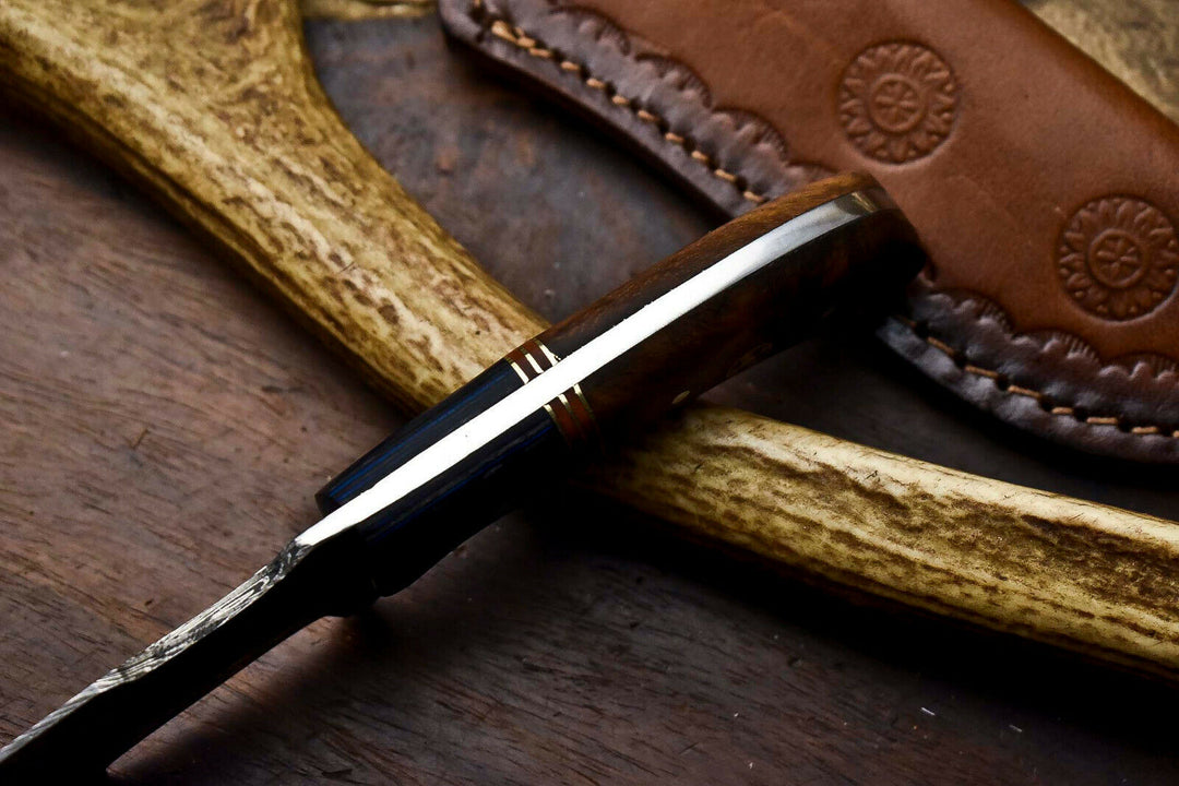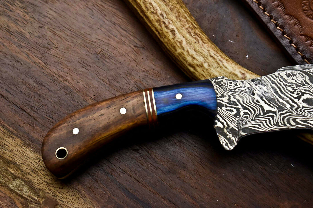 Custom Handmade Damascus Hunting Tracker knife wood handle