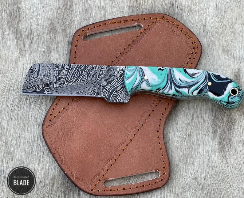 Custom Handmade Damascus Steel Bull Cutter Knife With Leather Sheath