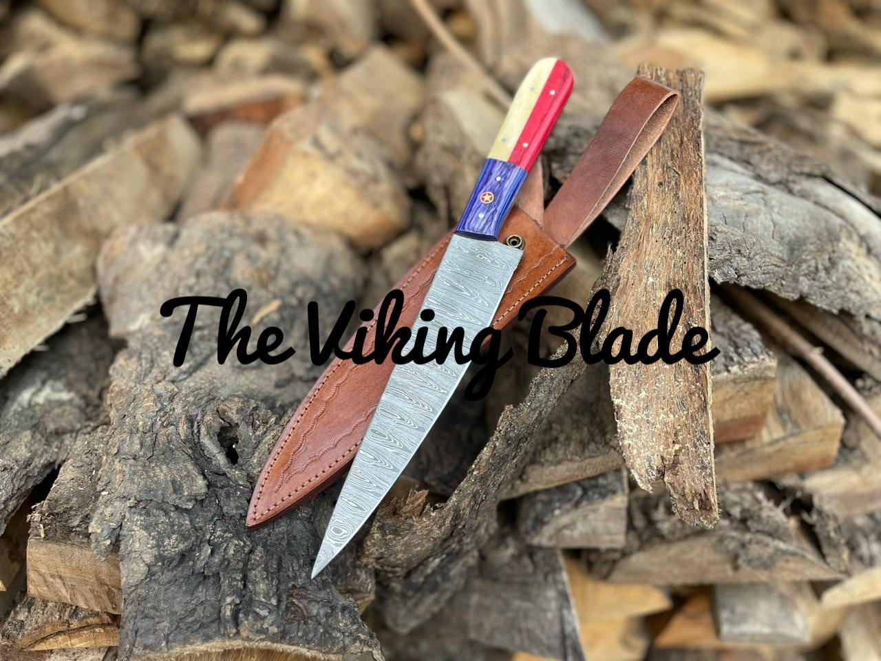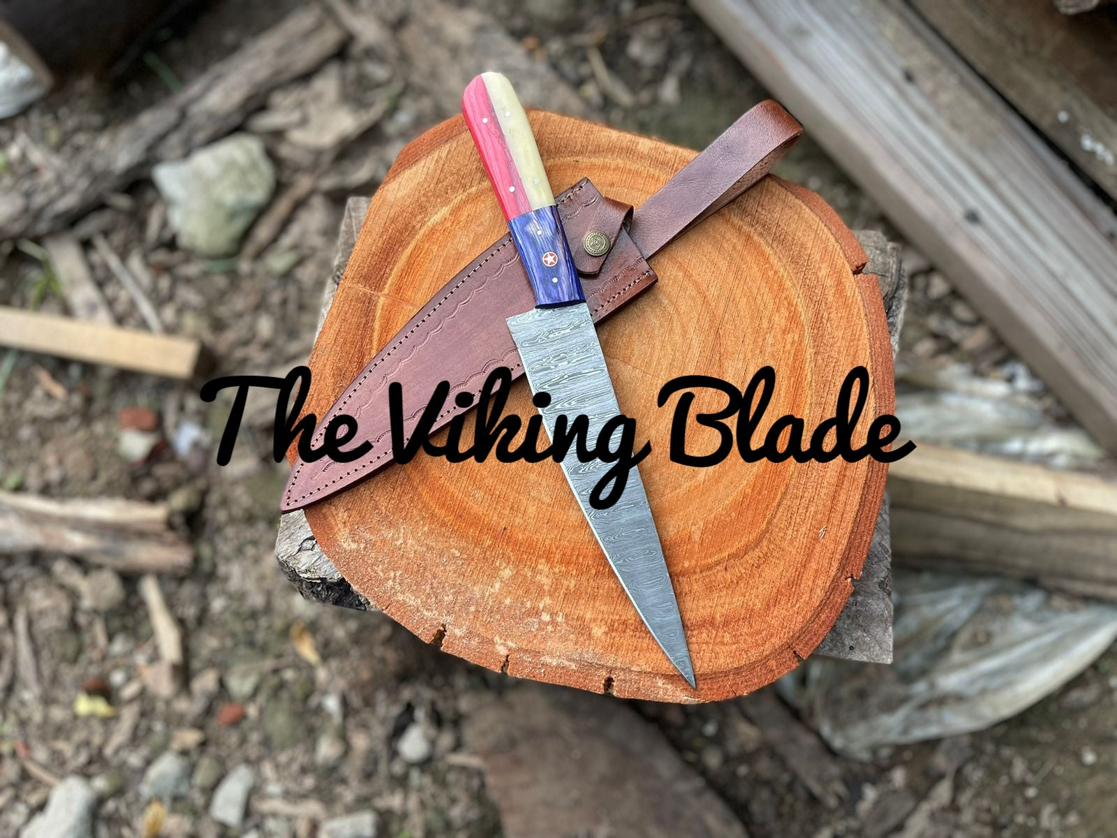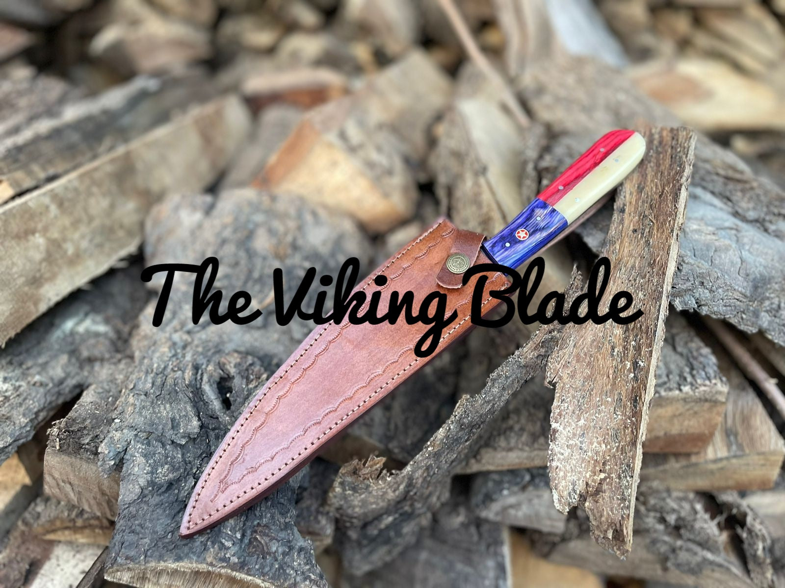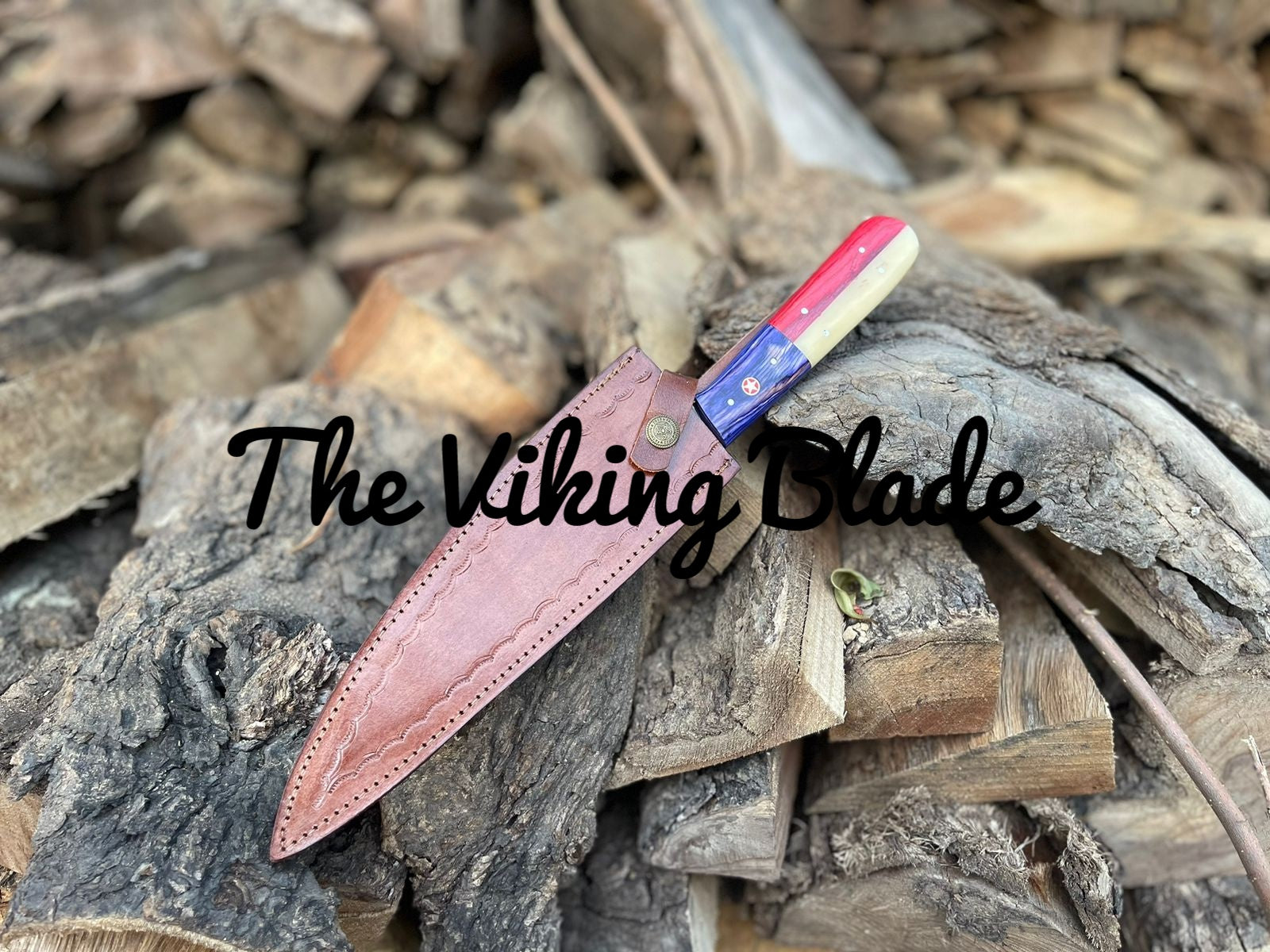 Custom Handmade Damascus Steel Chef Kitchen Knife With Leather Sheath