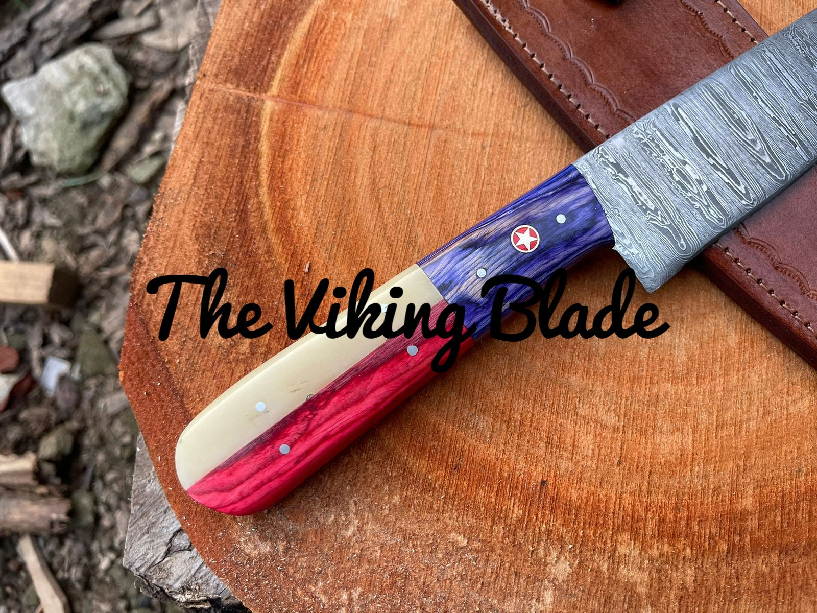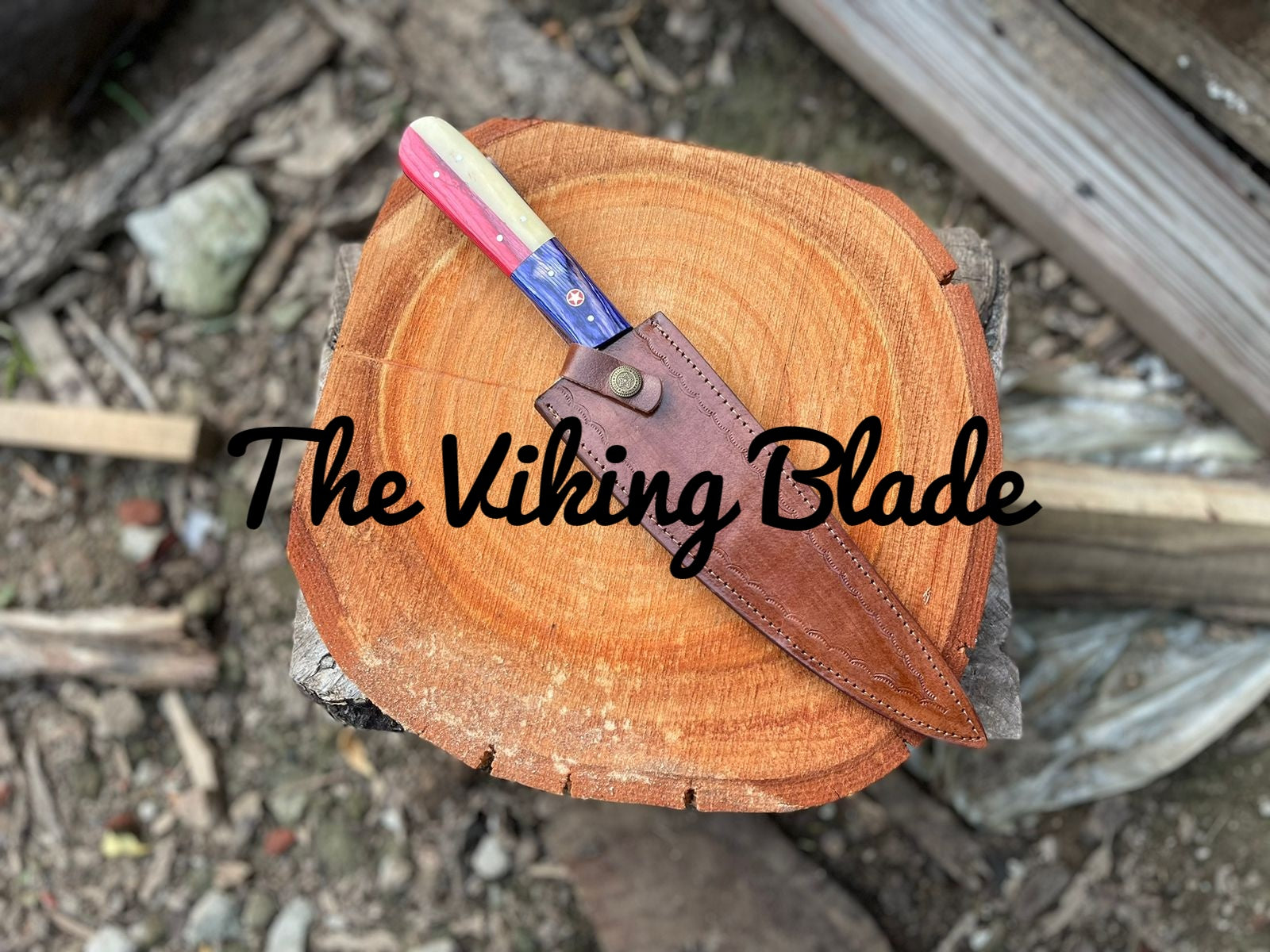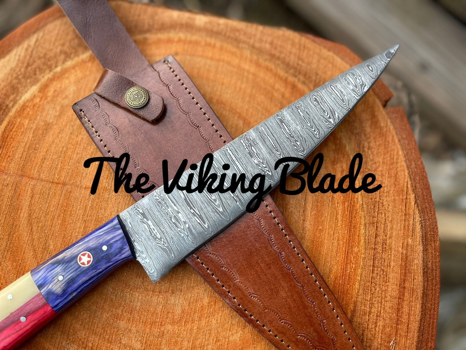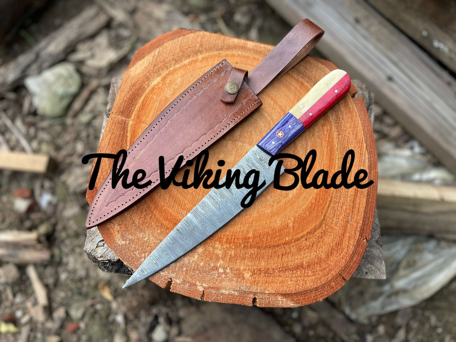 Custom Handmade Damascus Steel Chef Kitchen Knife With Leather Sheath