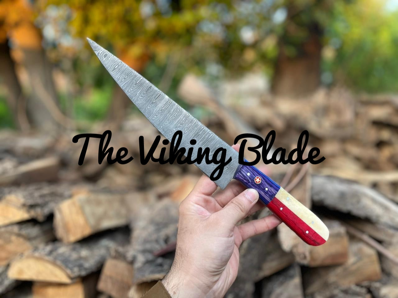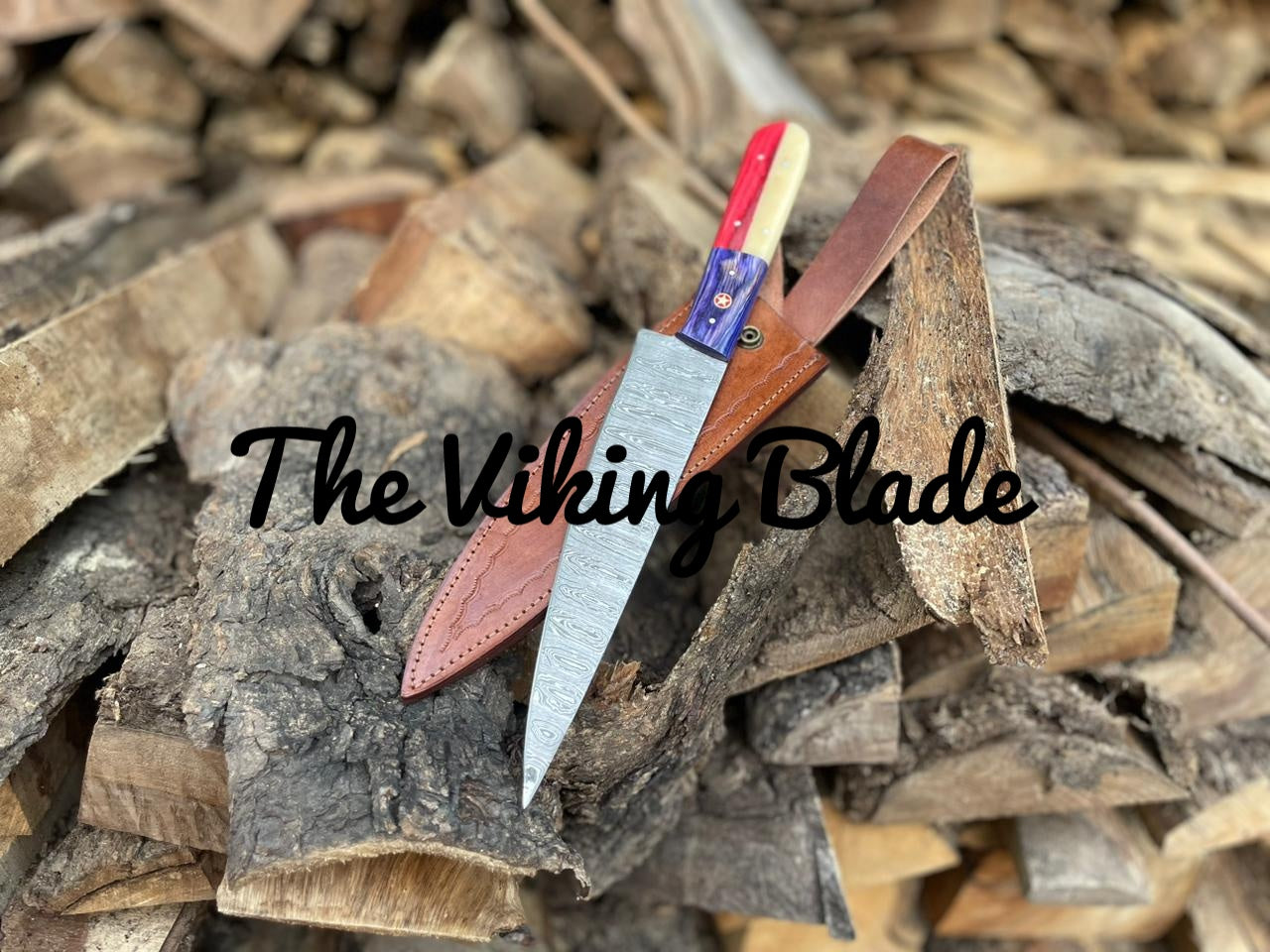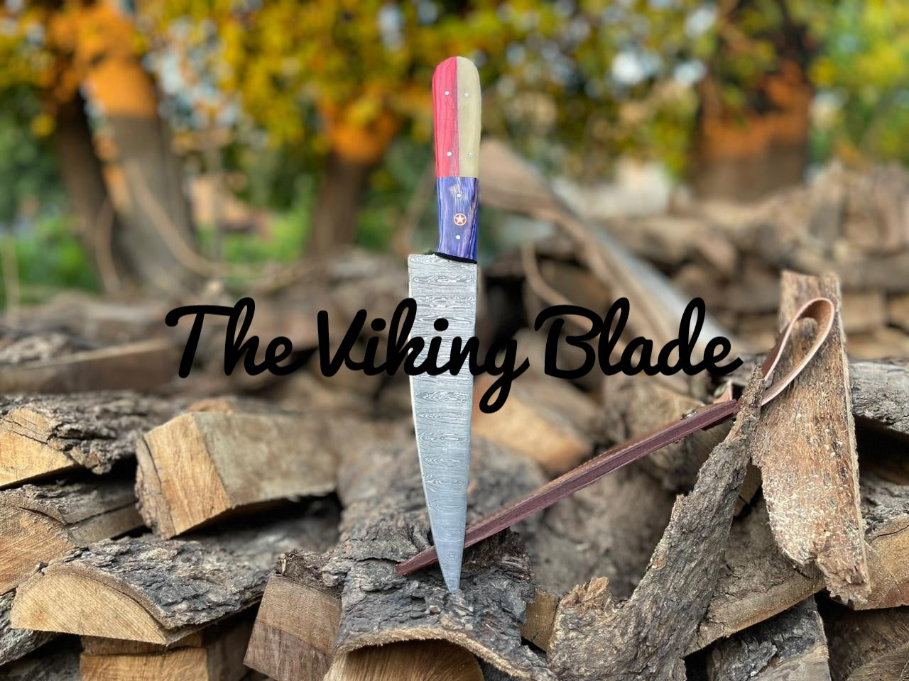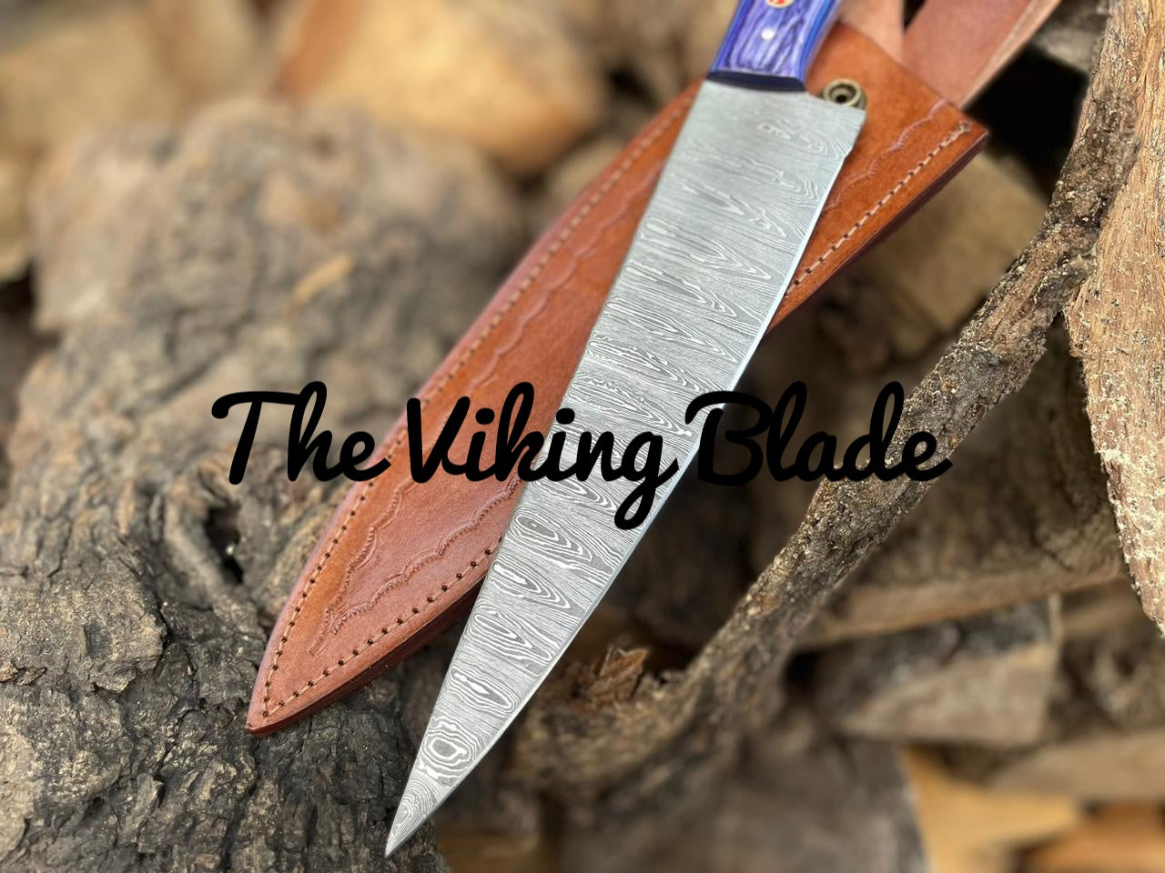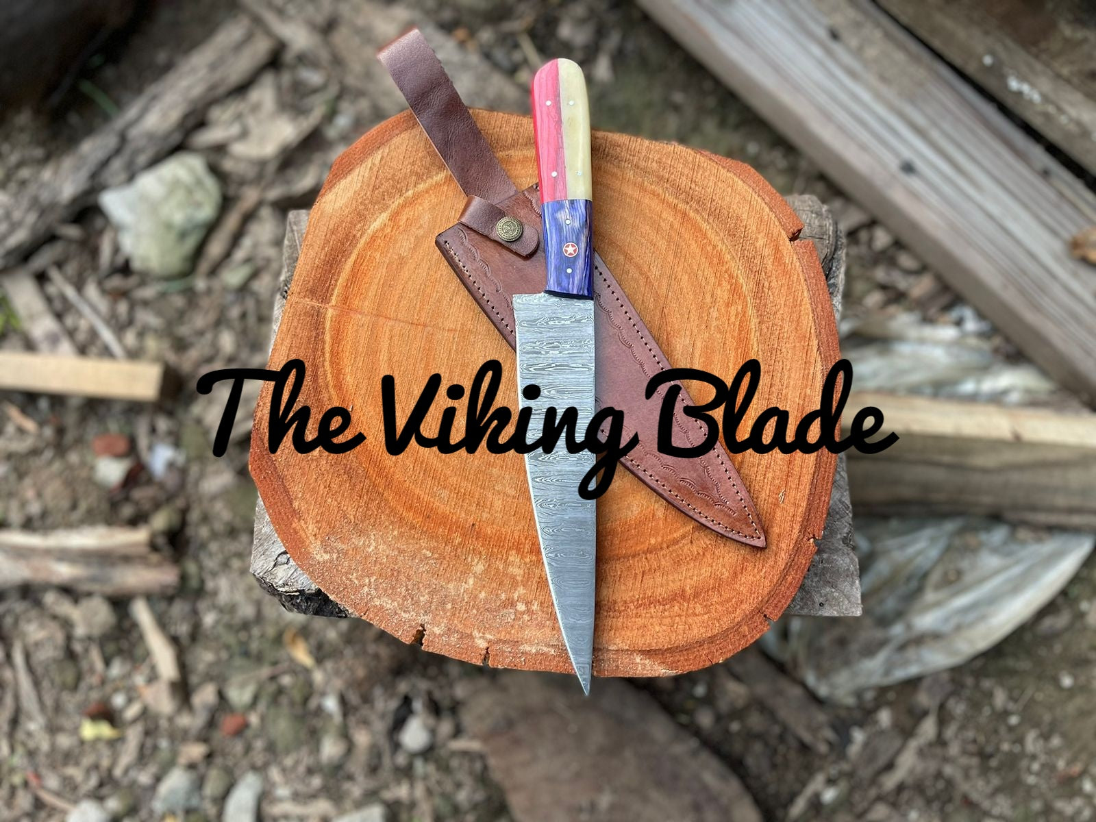 Custom Handmade Damascus Steel Chef Kitchen Knife With Leather Sheath