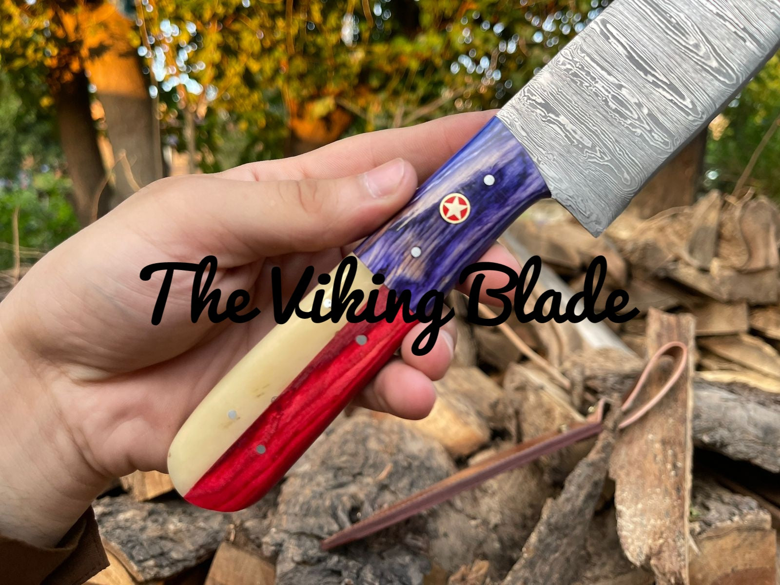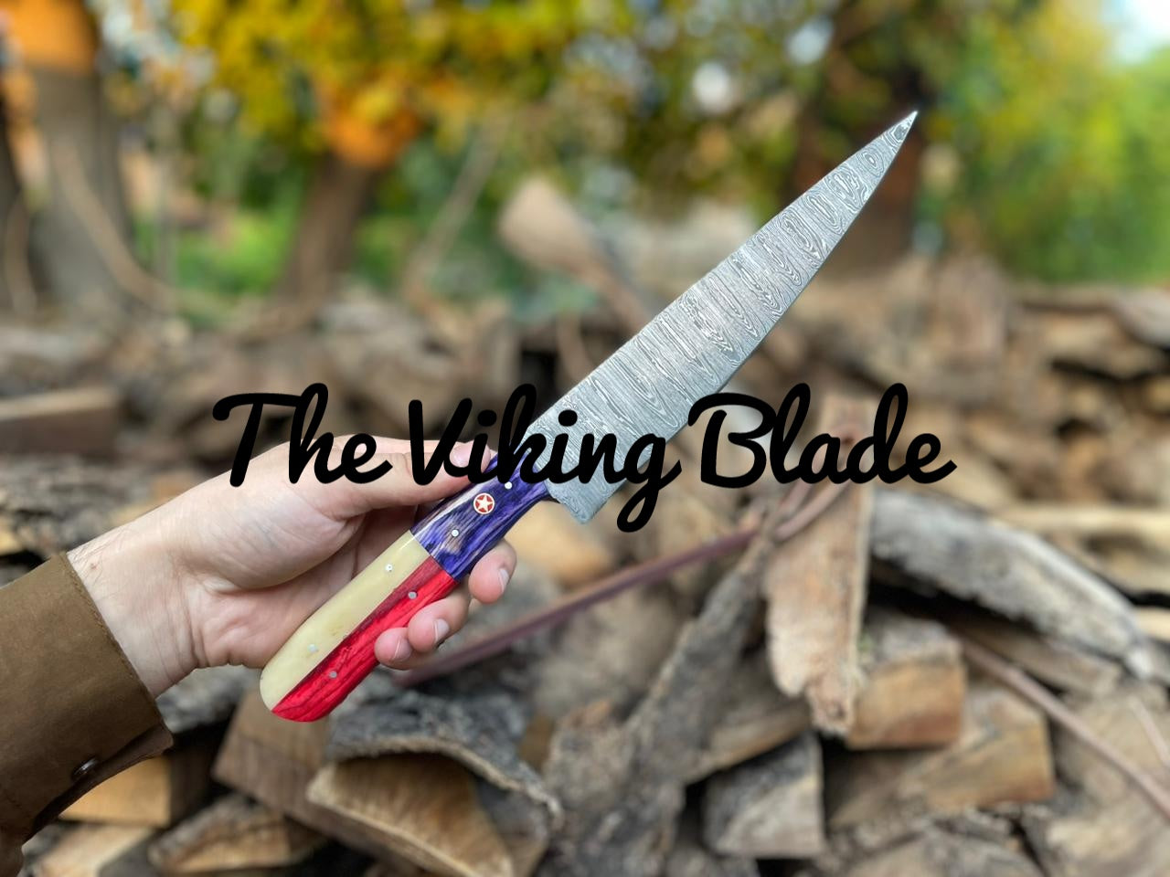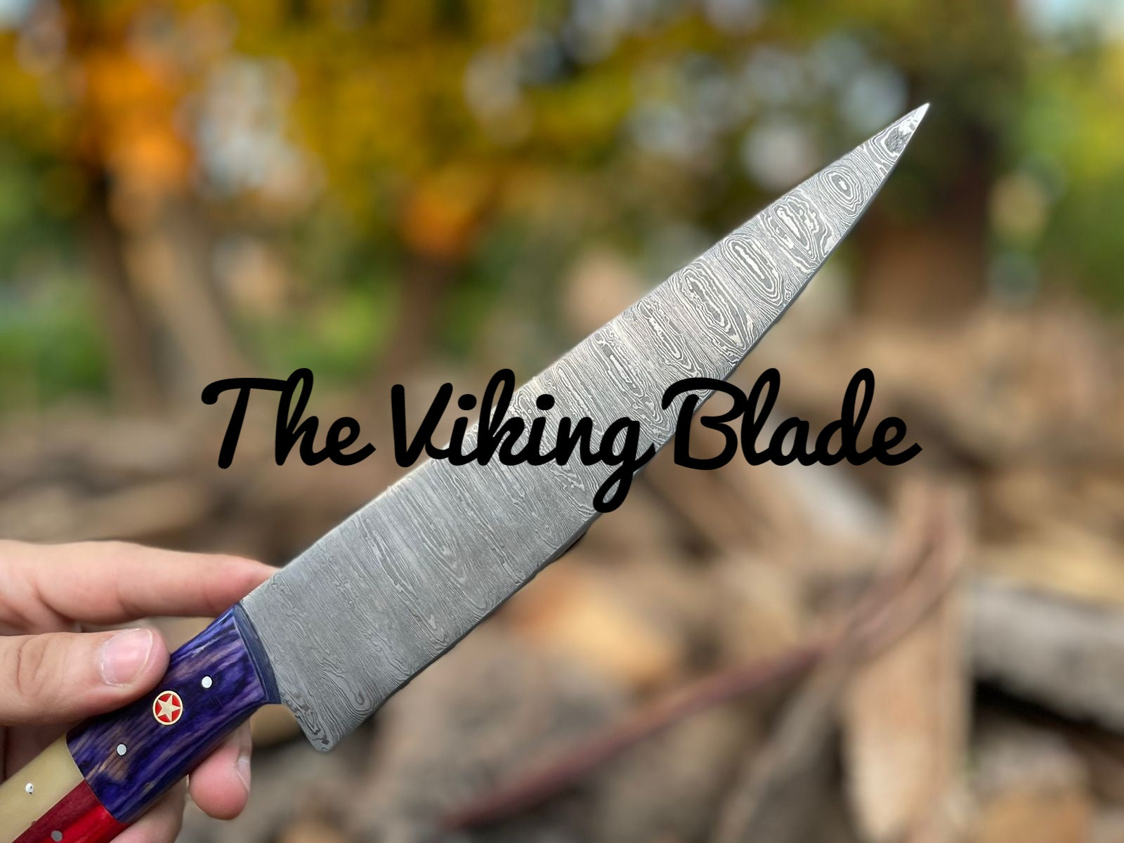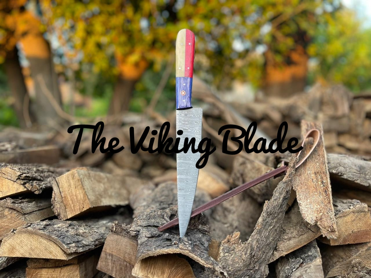 Custom Handmade Damascus Steel Chef Kitchen Knife With Leather Sheath