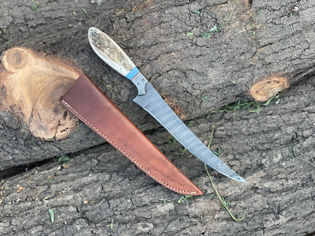 Custom Handmade Damascus Steel Fillet Fish Chef Knife With Leather Sheath