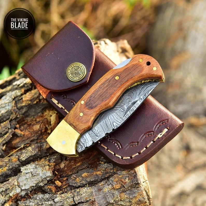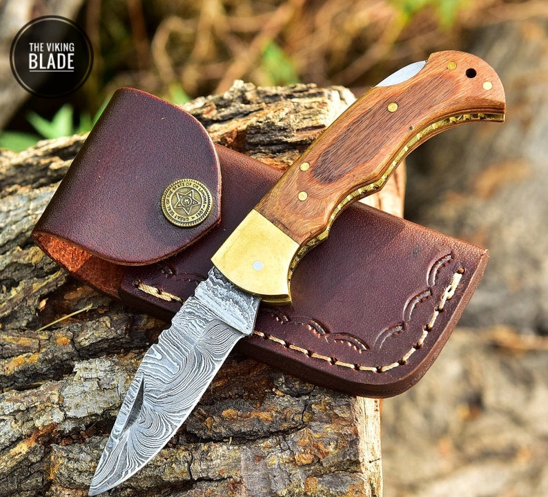 Custom Handmade Damascus Steel Folding Pocket Knife Hunting CAMPING EDC Comes with Genuine Leather Sheath