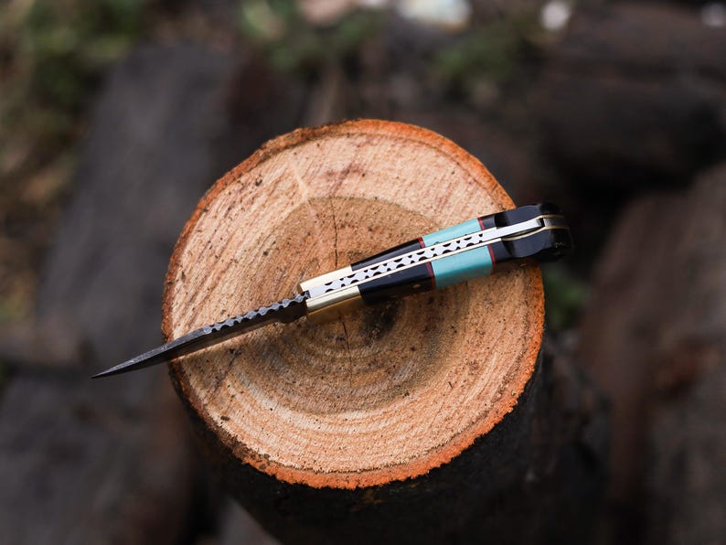 Custom Handmade Damascus Steel Folding Pocket Knife With Leather Pouch