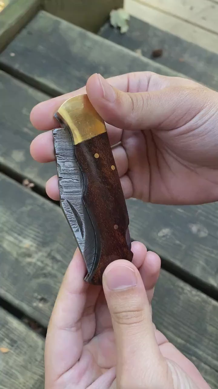 Custom Handmade Damascus Steel Folding Pocket Knife With Leather Sheath