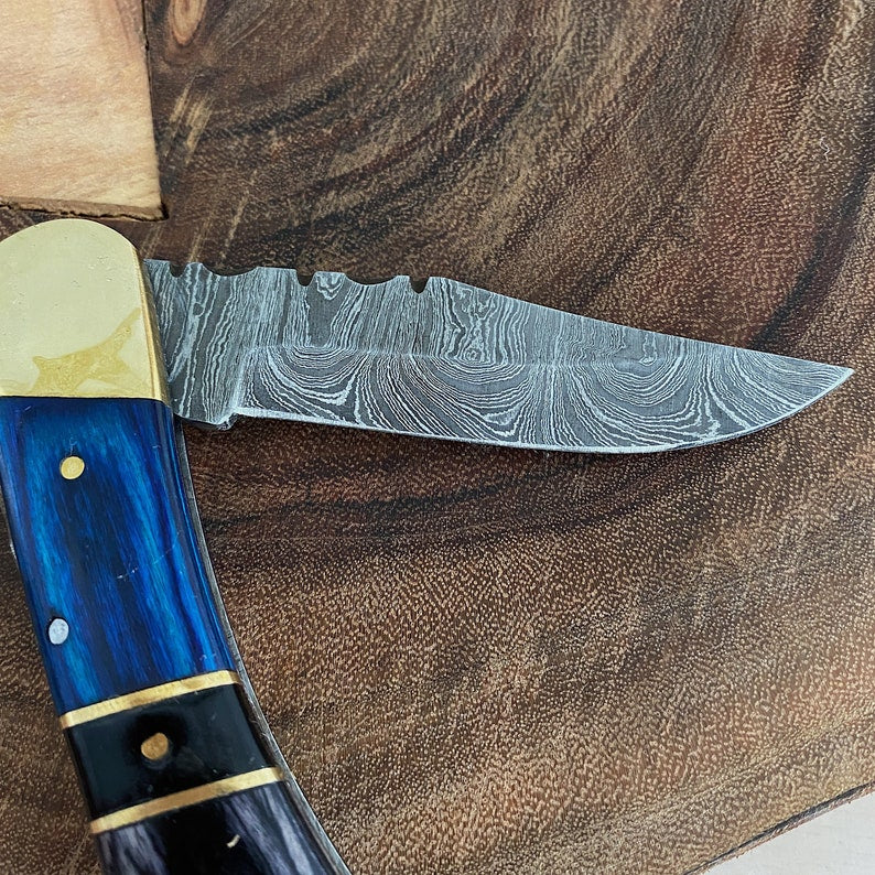 Custom Handmade Damascus Steel Folding Pocket Knife With Leather Sheath