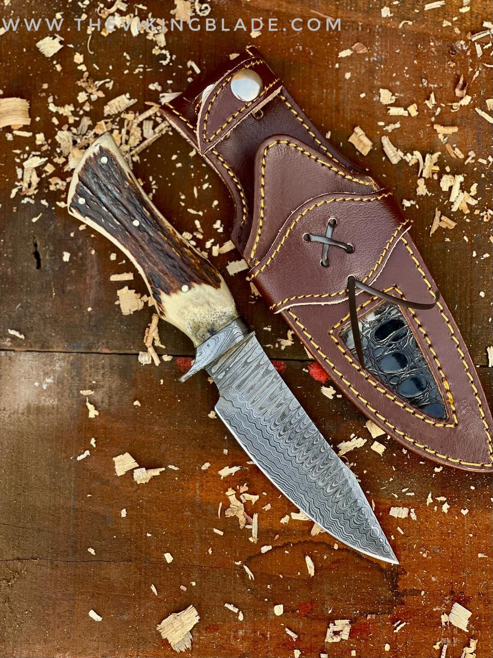 Custom Handmade Damascus Steel Hunting Knife With Leather Sheath