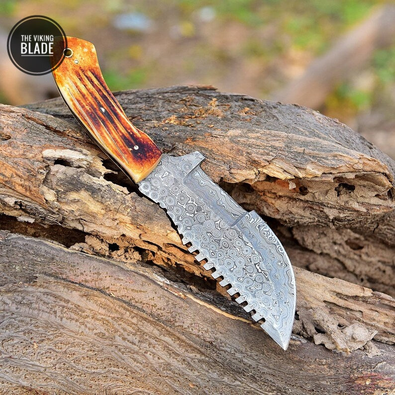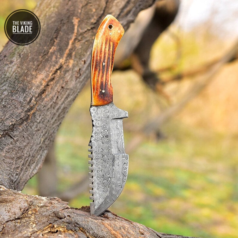 Custom Handmade Damascus Steel Hunting Skinning TRACKER KNIFE SURVIVAL Comes With Genuine Leather Cover