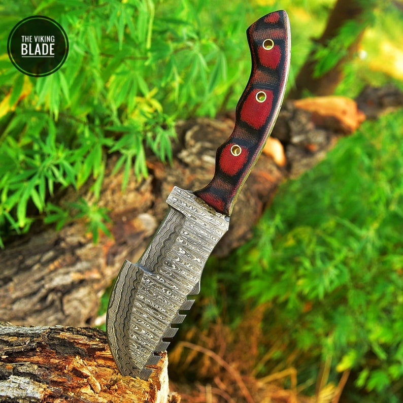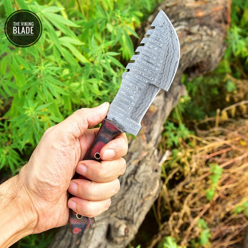 Custom Handmade Damascus Steel Hunting Tracker Knife Skinning Survival Camping Outdoor Comes with leather cover