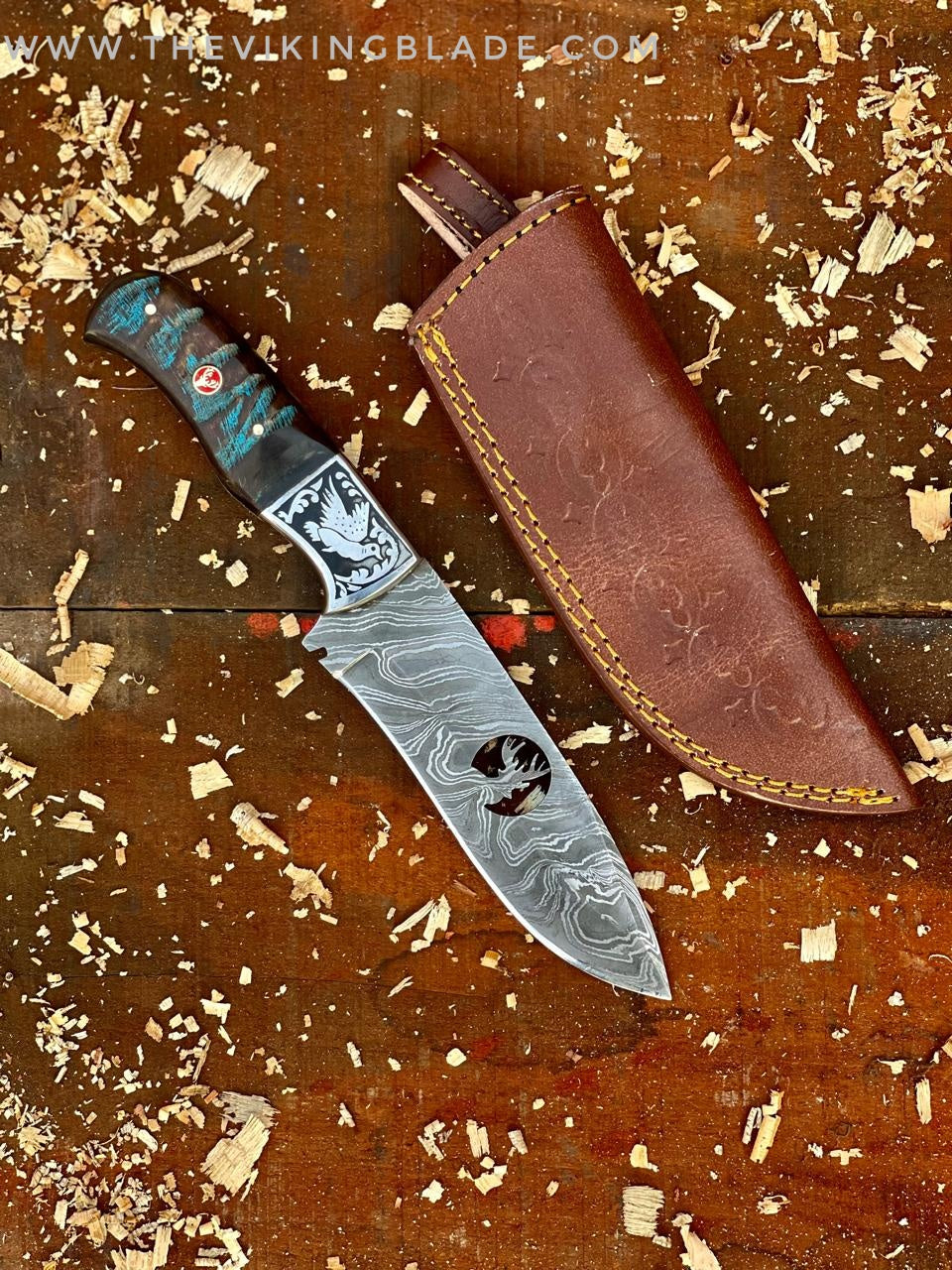 Custom Handmade Damascus Steel Knife With Leather Sheath
