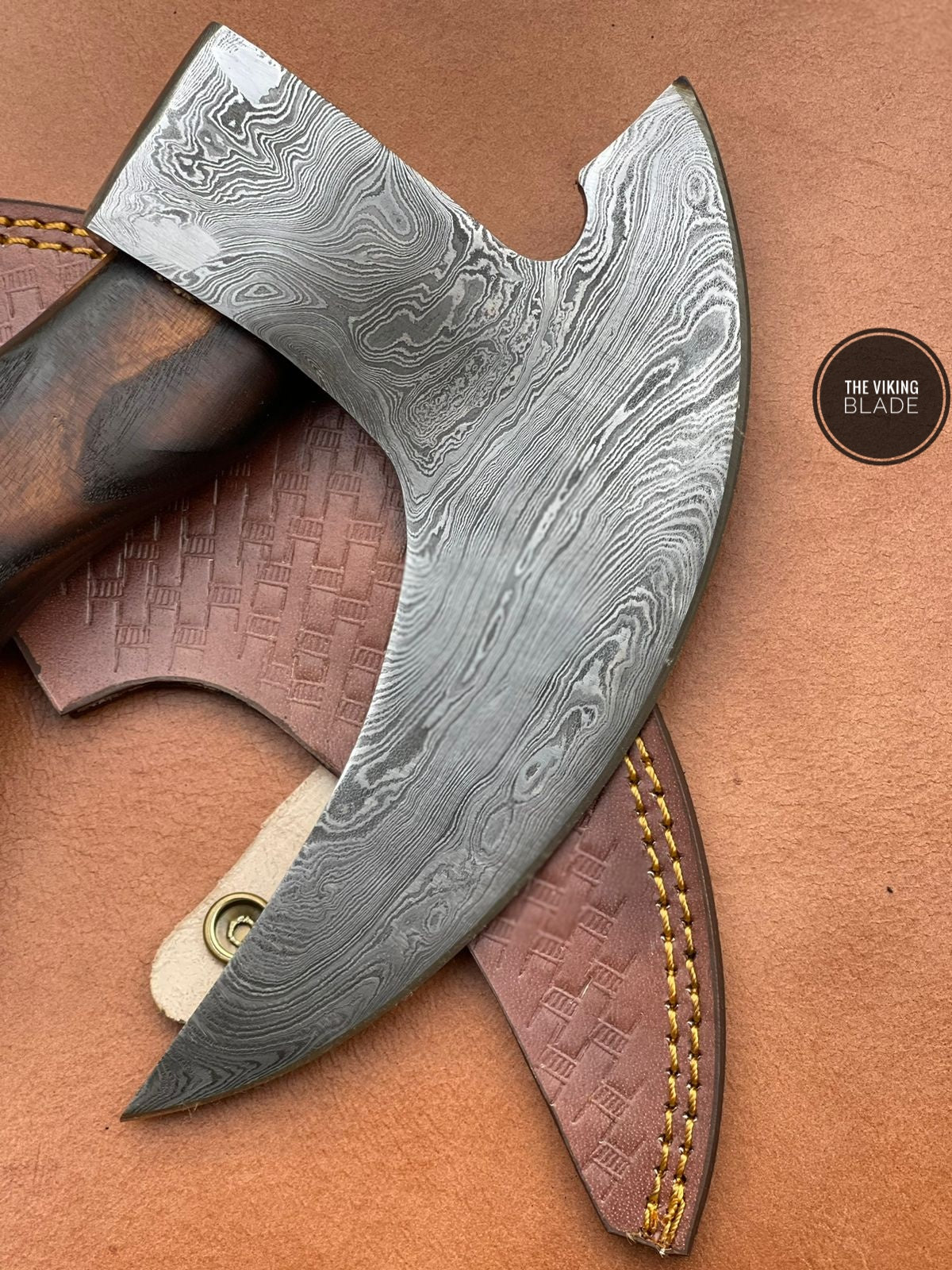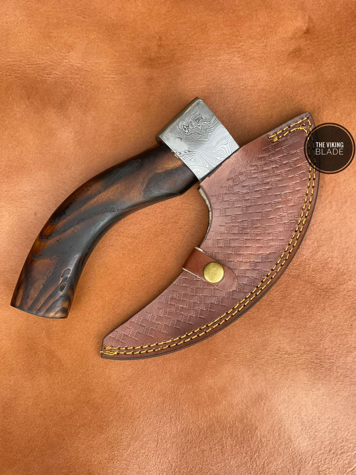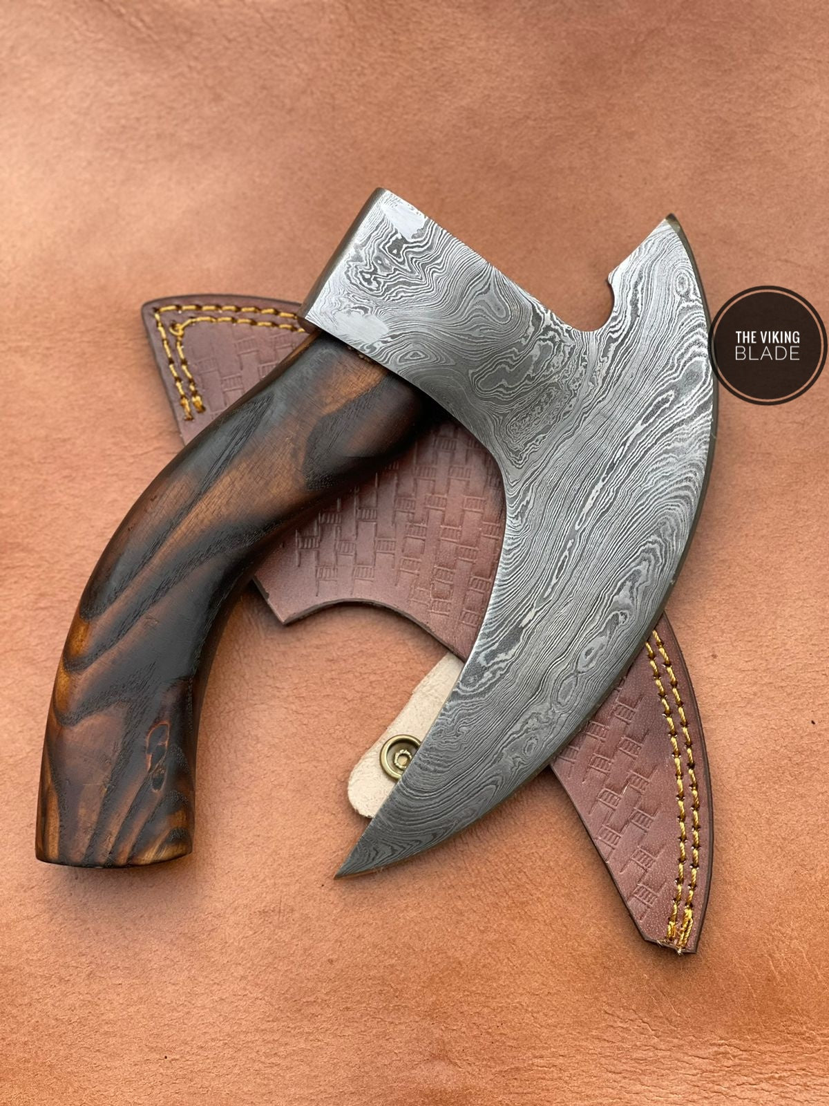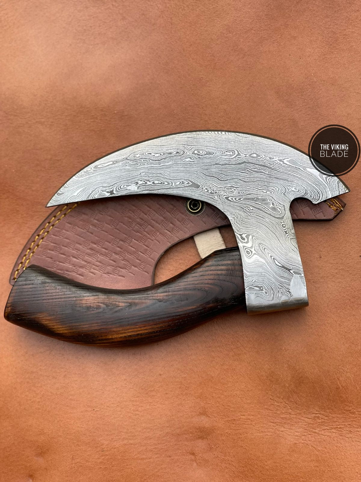 Custom Handmade Damascus Steel Pizza Cutter Axe With Leather Sheath