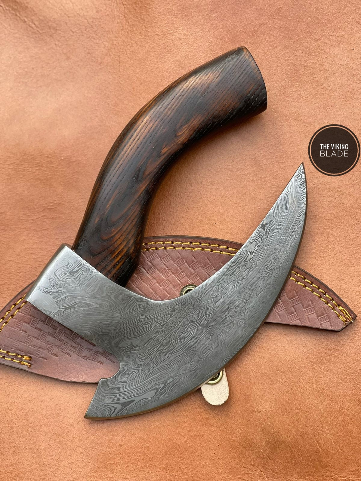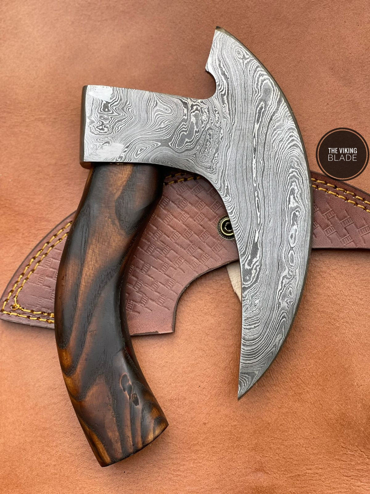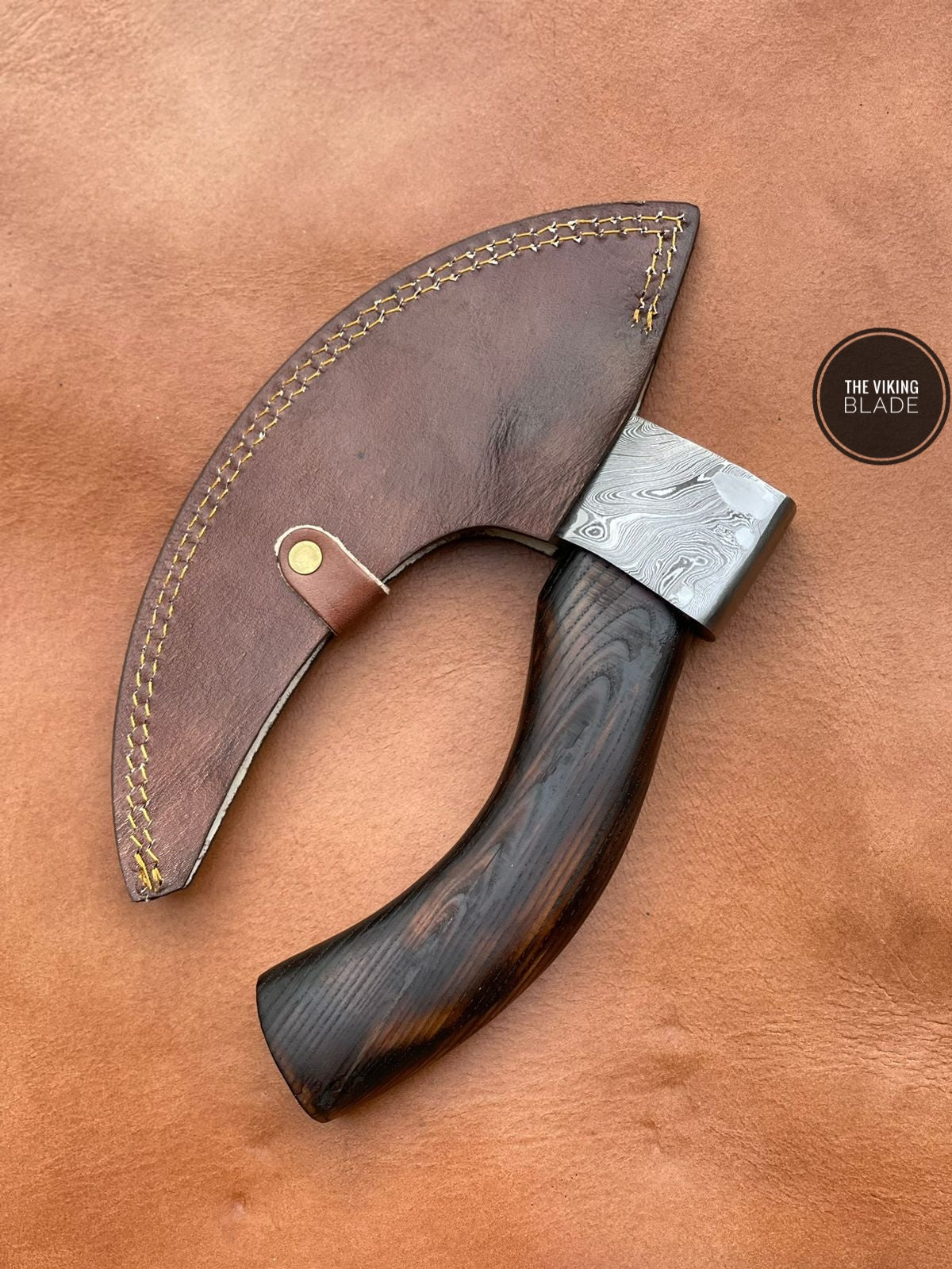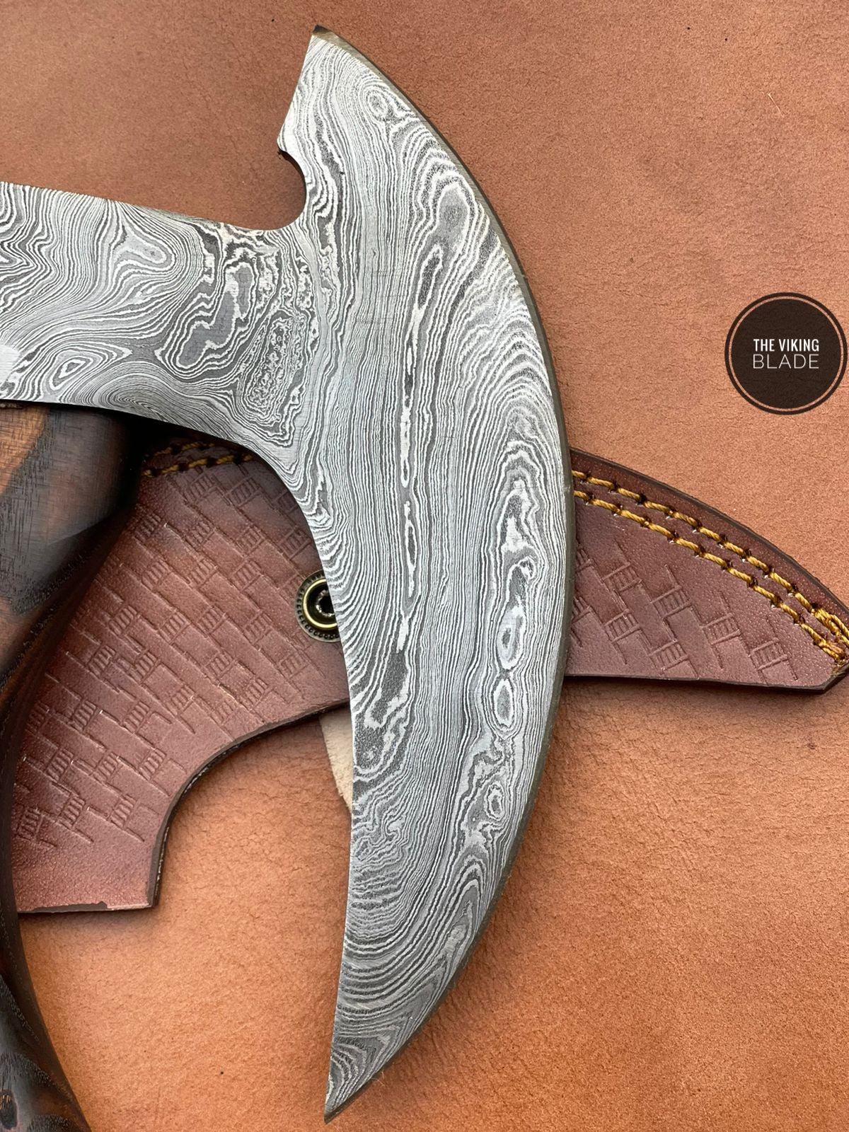 Custom Handmade Damascus Steel Pizza Cutter Axe With Leather Sheath