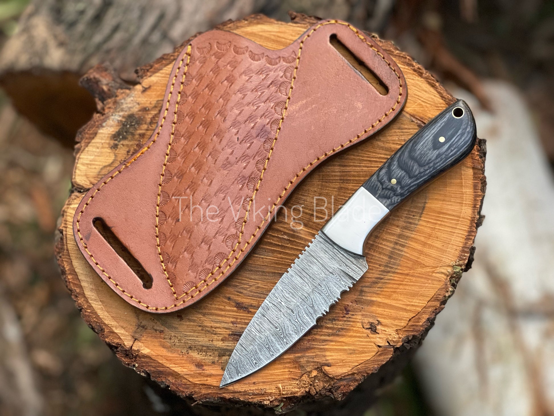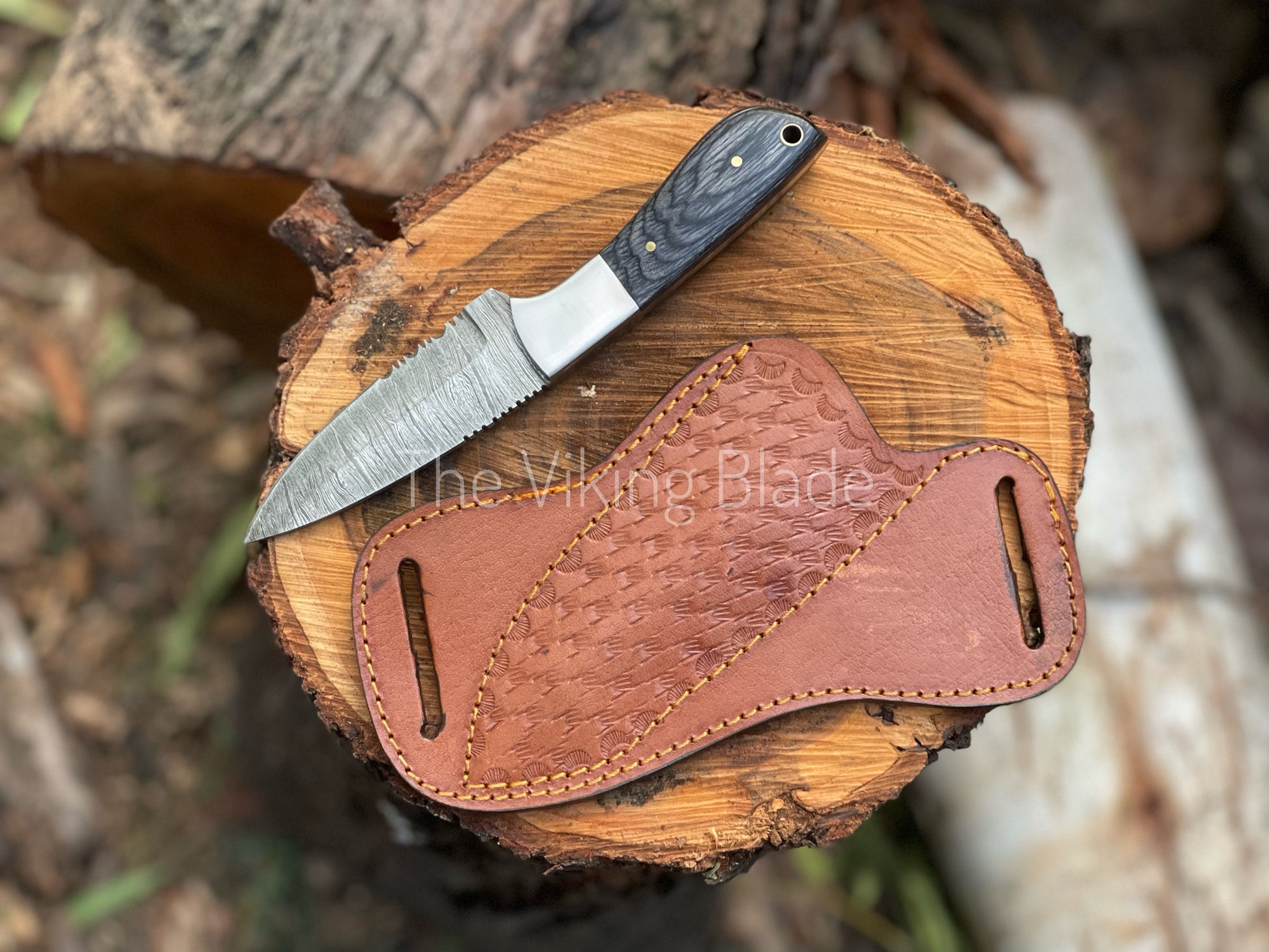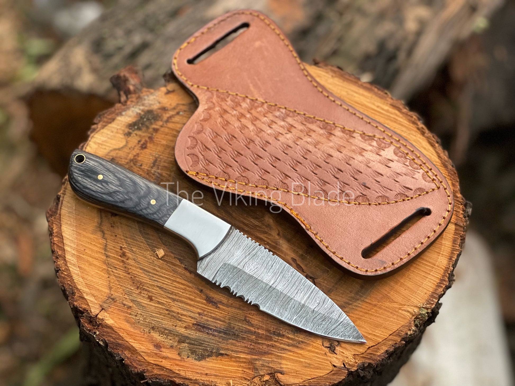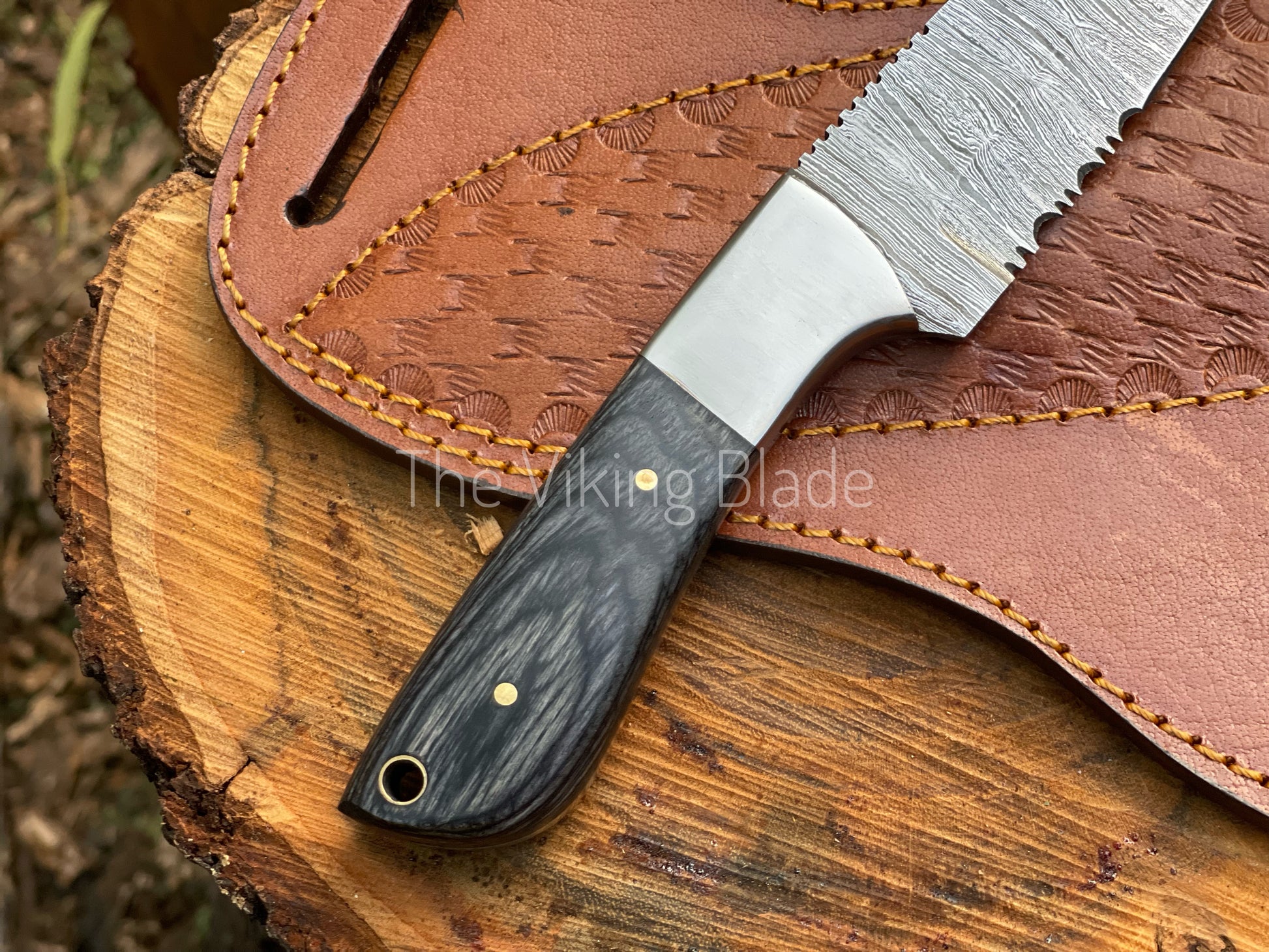 Custom Handmade Damascus Steel Skinner Hunting Knife With Leather Sheath