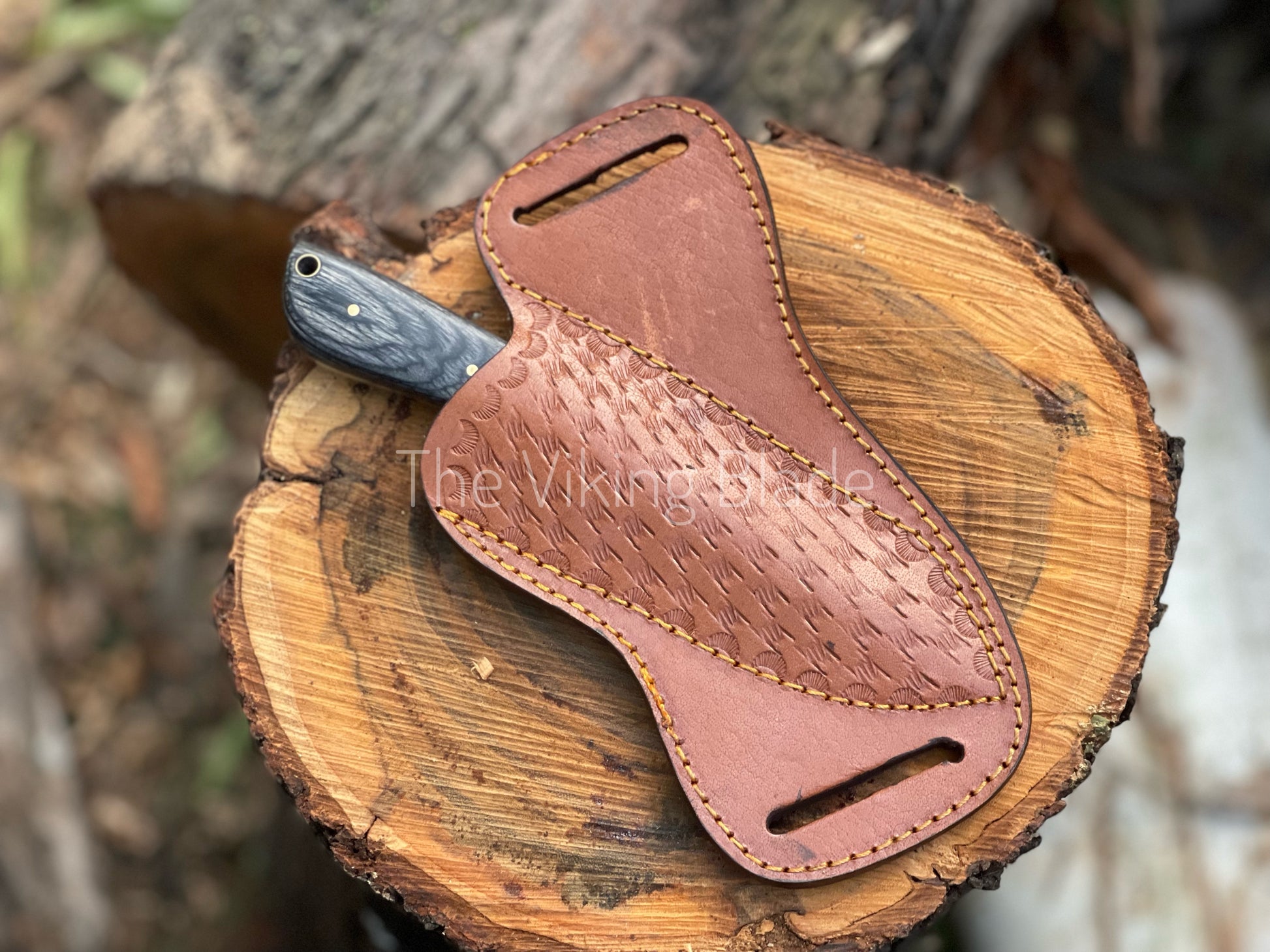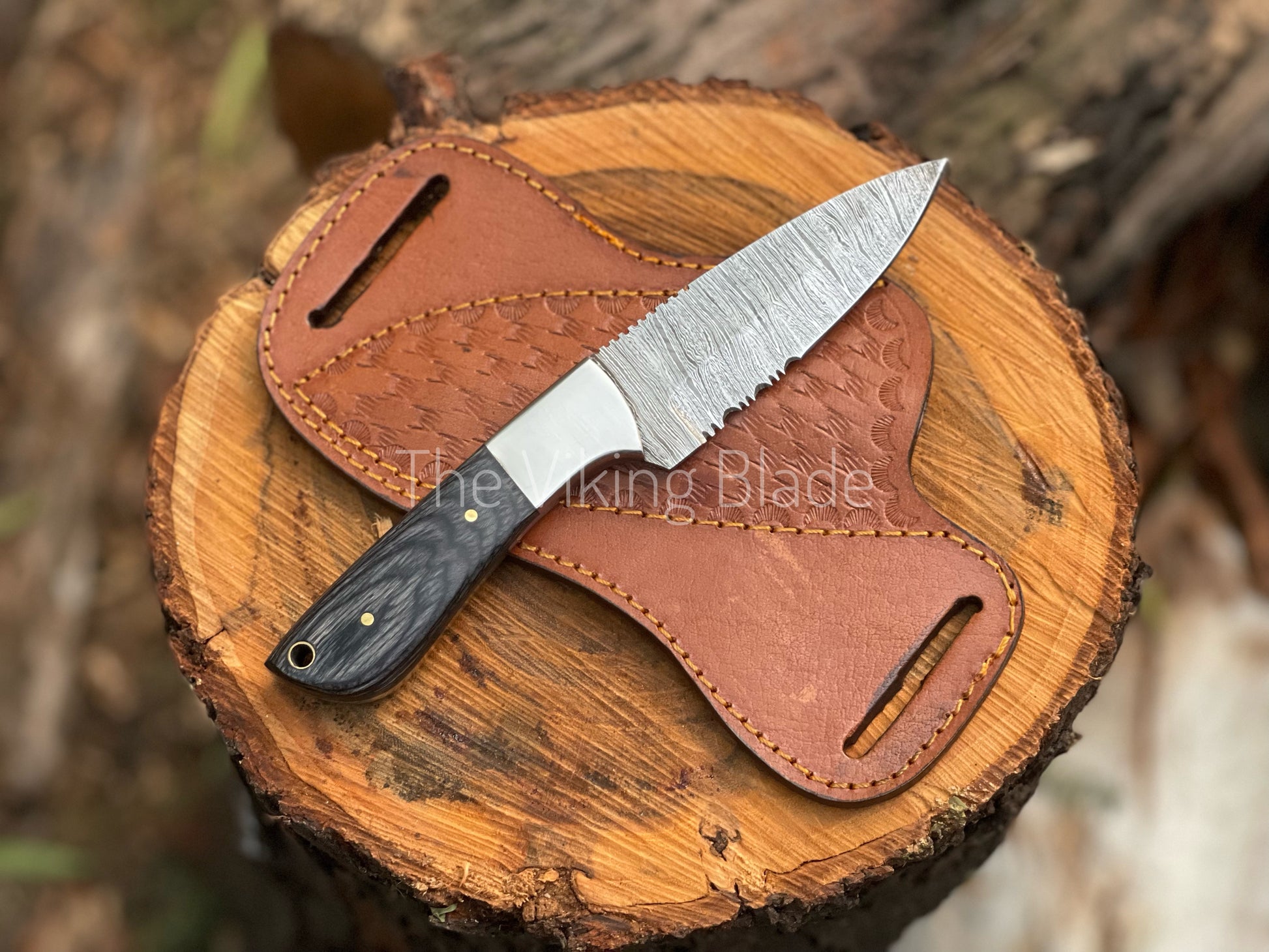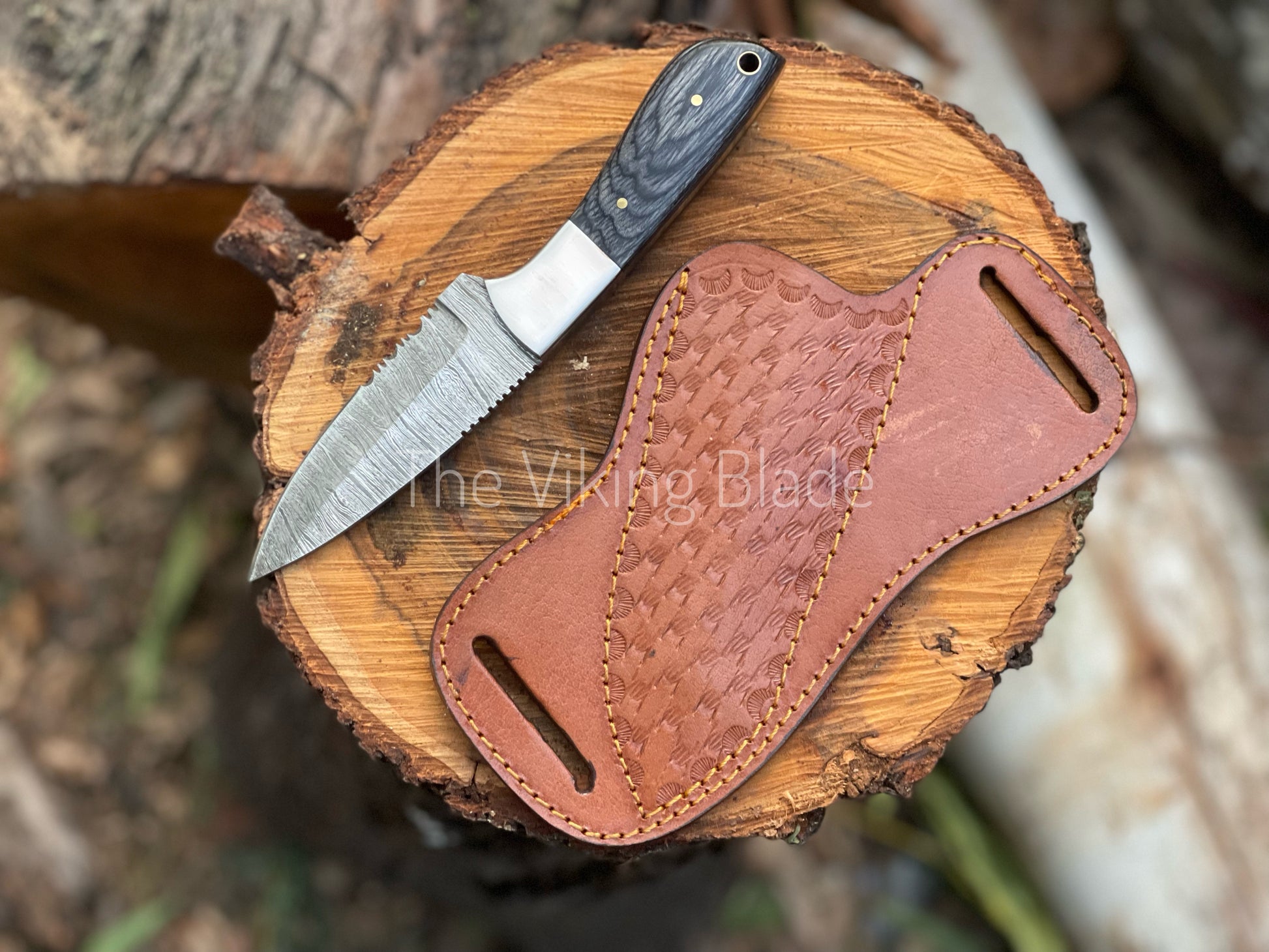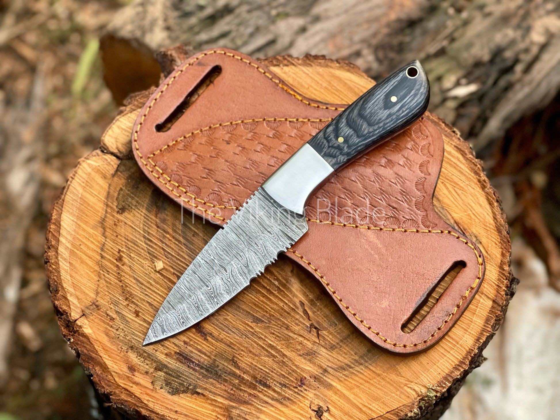 Custom Handmade Damascus Steel Skinner Hunting Knife With Leather Sheath