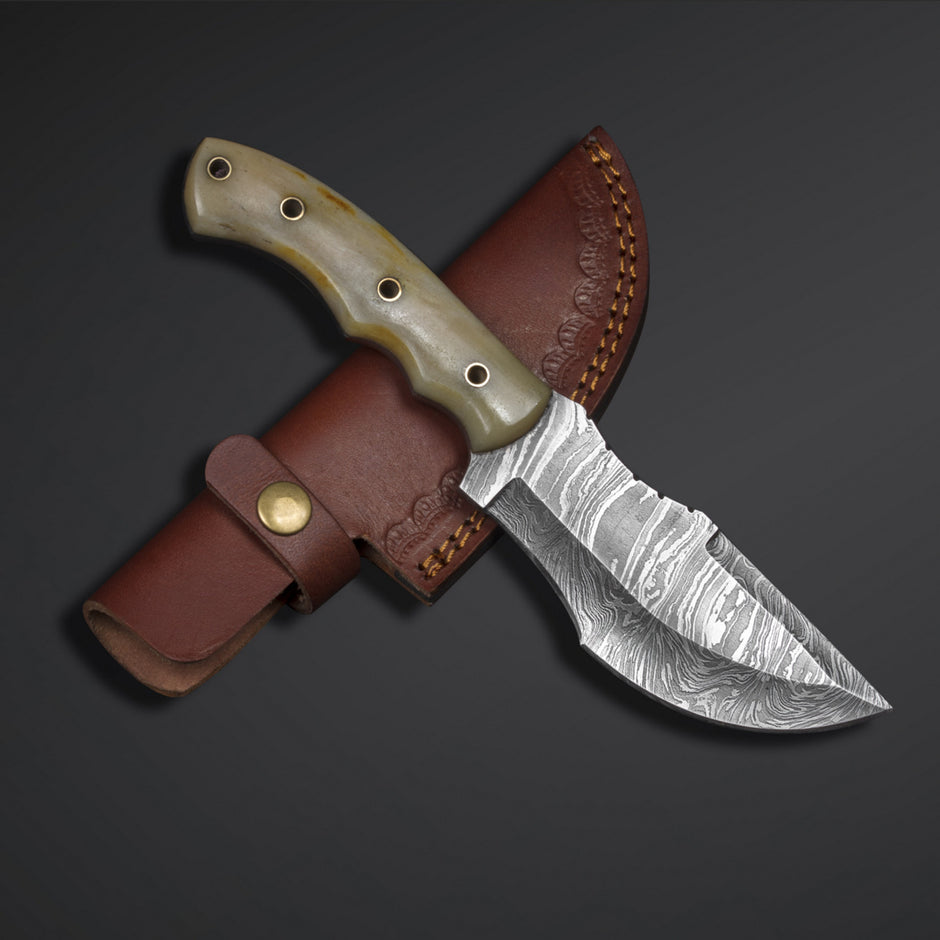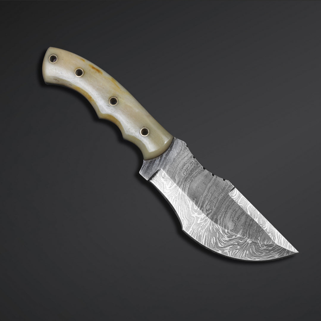 Custom Handmade Damascus Steel Tracker Knife With Leather Sheath