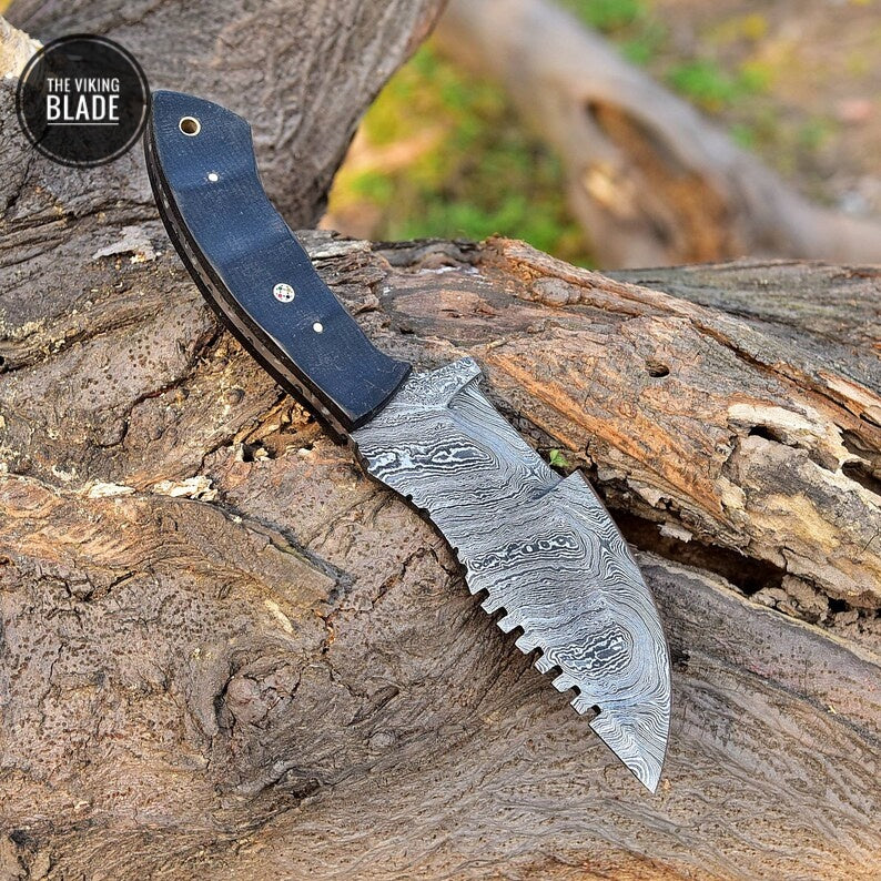 Custom Handmade Damascus Tracker Knife Hunting SURVIVAL BUSHCRAFT SKINNING Comes with leather cover