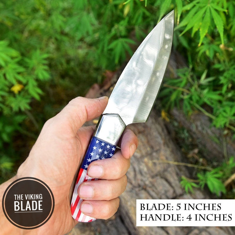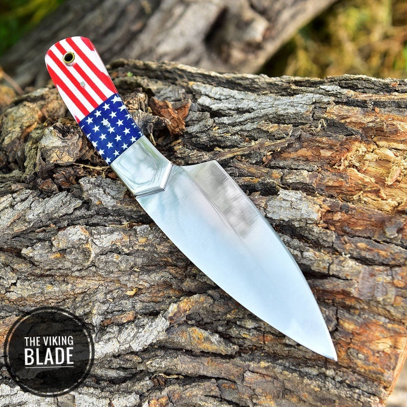 Custom Handmade Fixed Knife D2 Steel Blade Survival hunting American flag handle