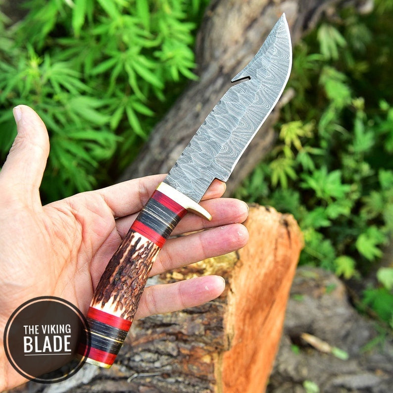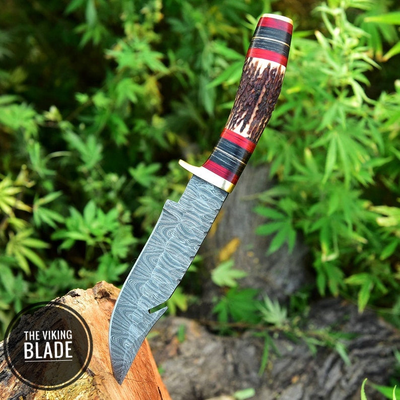 Custom Handmade Forged Damascus Steel Hunting Knife with Stag & Brass Guard Handle Comes With Genuine Leather Sheath