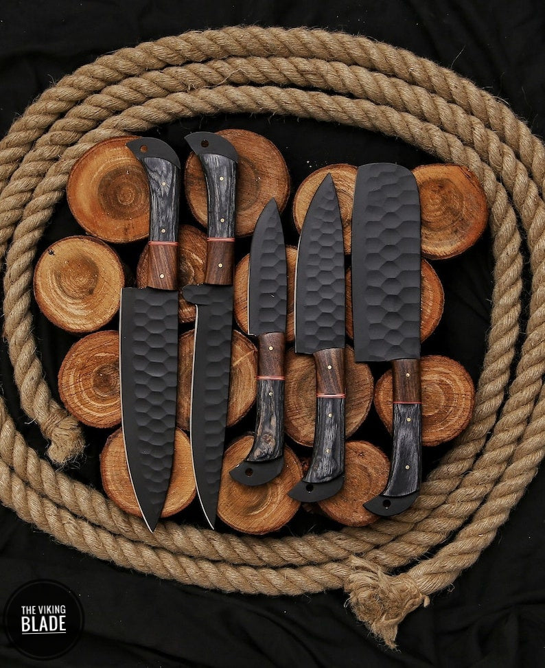 Handmade Steel Chef Knife Set. Beautifully designed and easy to grip, comes with Leather Sheath.