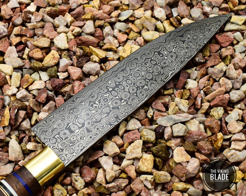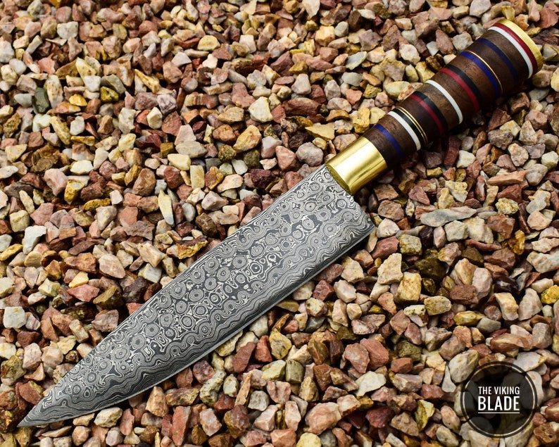 Damascus Steel Chef Knife Beautiful Rose Wood & Resin Handle