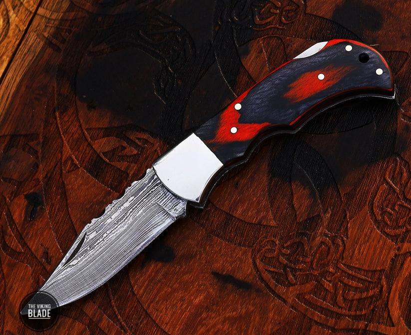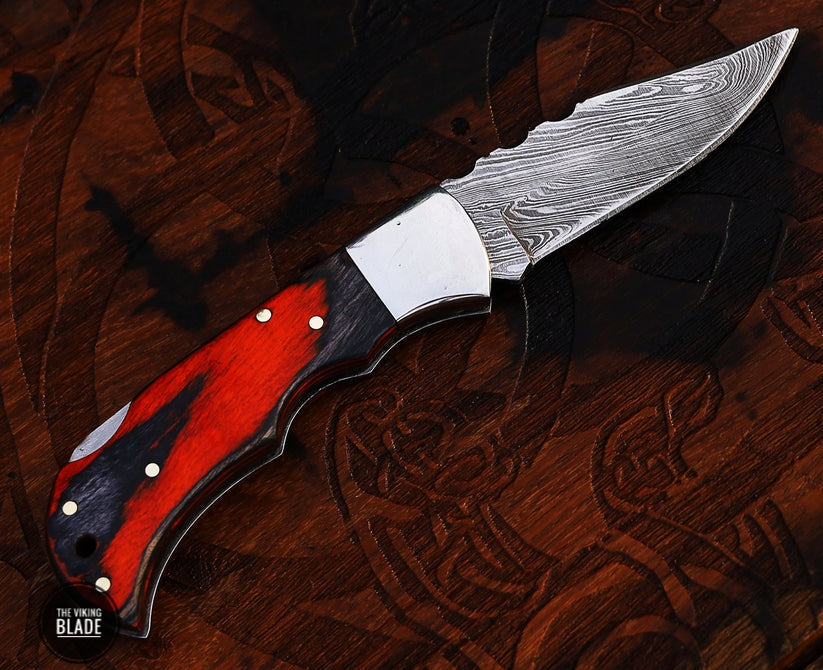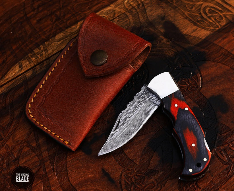 Damascus Steel Pocket Knife with Damascus Folding Knife