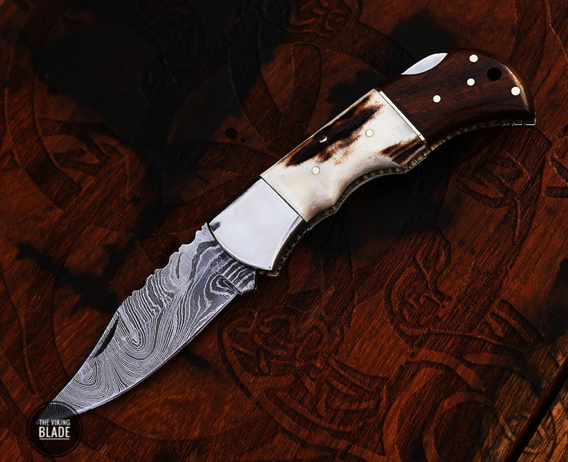 Damascus Steel Pocket Knife with Damascus Folding Knife