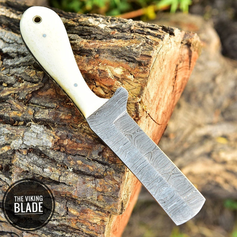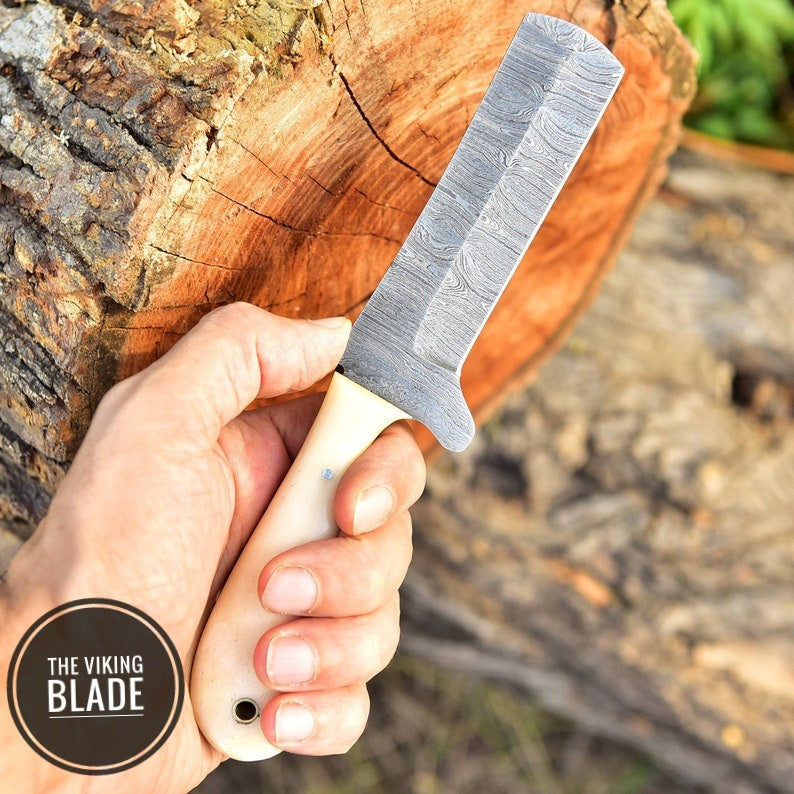 EDC Handmade Damascus Steel Hunting Skinning Bull Cutter Camel BONE HANDLE Comes With Genuine Leather Sheath