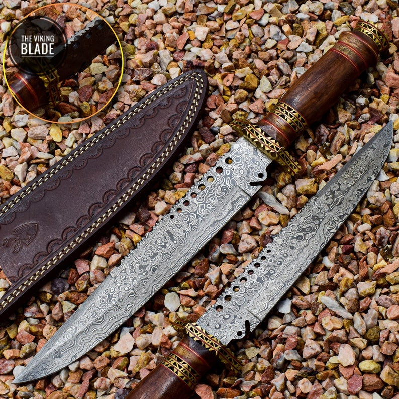 Fancy Handmade Damascus Steel Hunting and Camping Knife With Leather Sheath