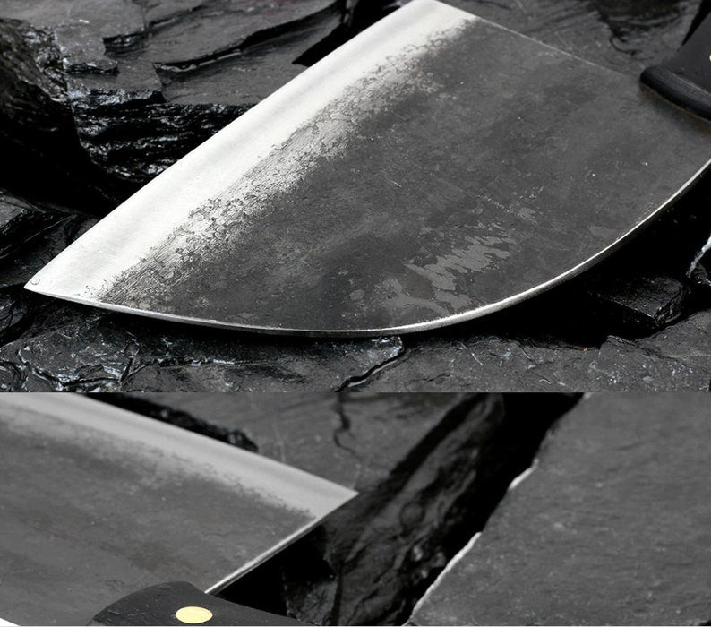 Full Tang Handforge Kitchen Chef Knife High Carbon Clad Steel Butcher Cleaver with PU Leather Knife Sheath