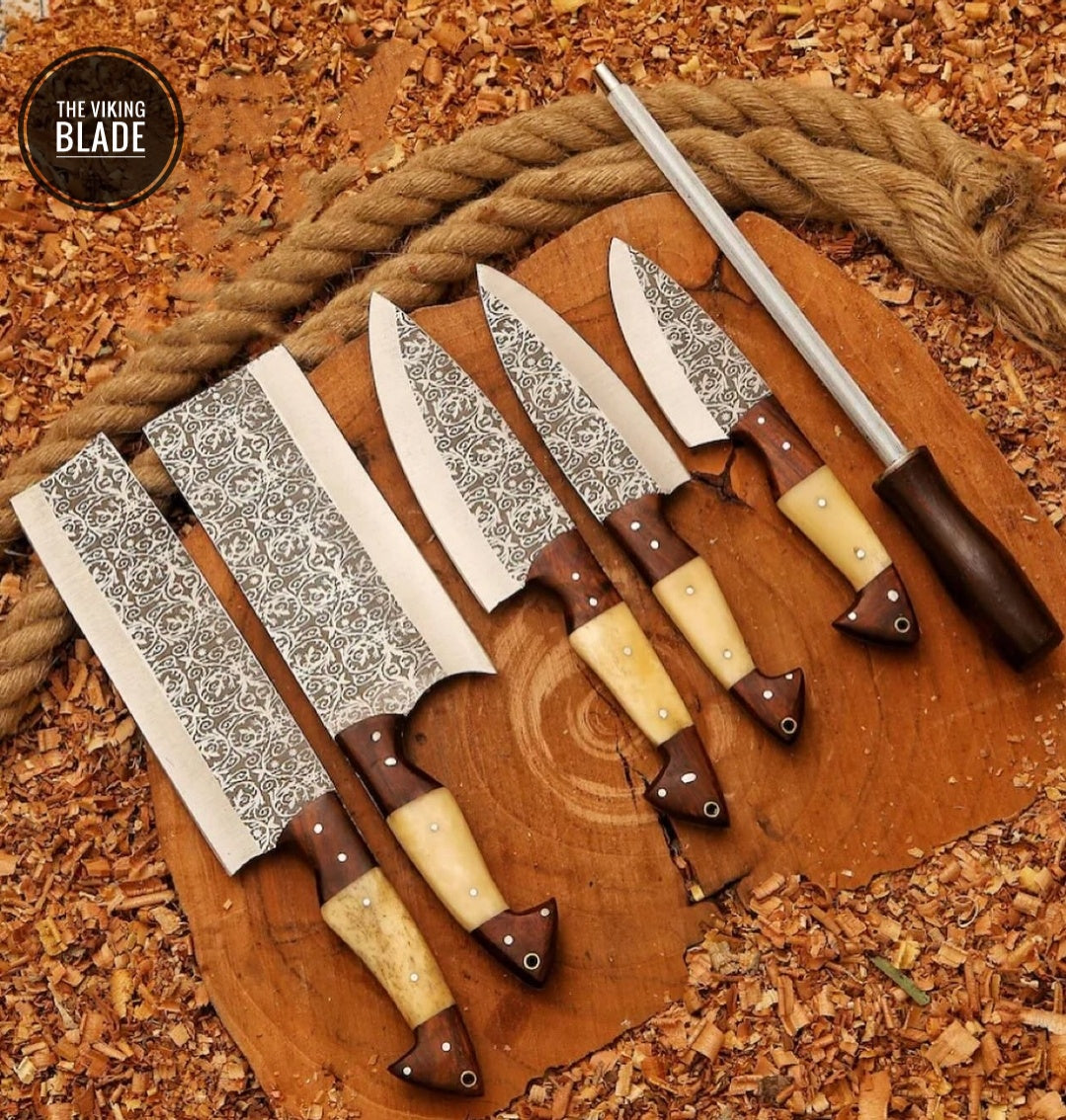 Hand Forged Chef Knifes Set With Leather Roll Kit