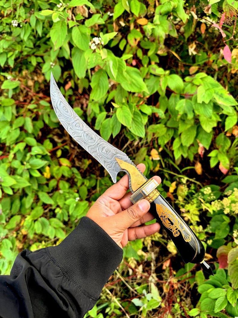 This exceptional, hand-forged Damascus Bowie Knife is a true masterpiece of the bladesmith's art, designed for the discerning collector and outdoorsman.