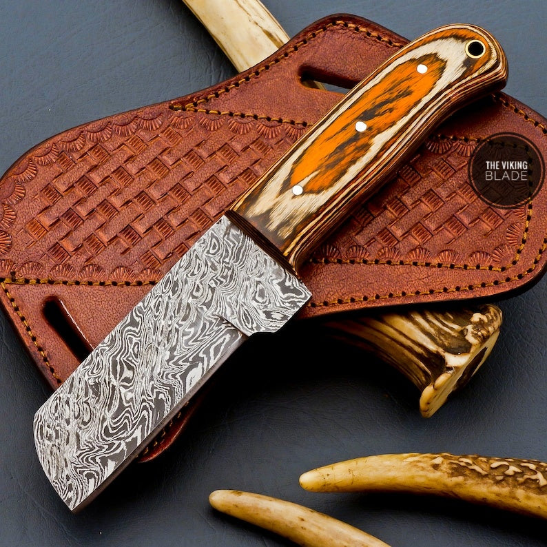 Hand Forged Damascus Steel Bull Cutter Cowboy Knife