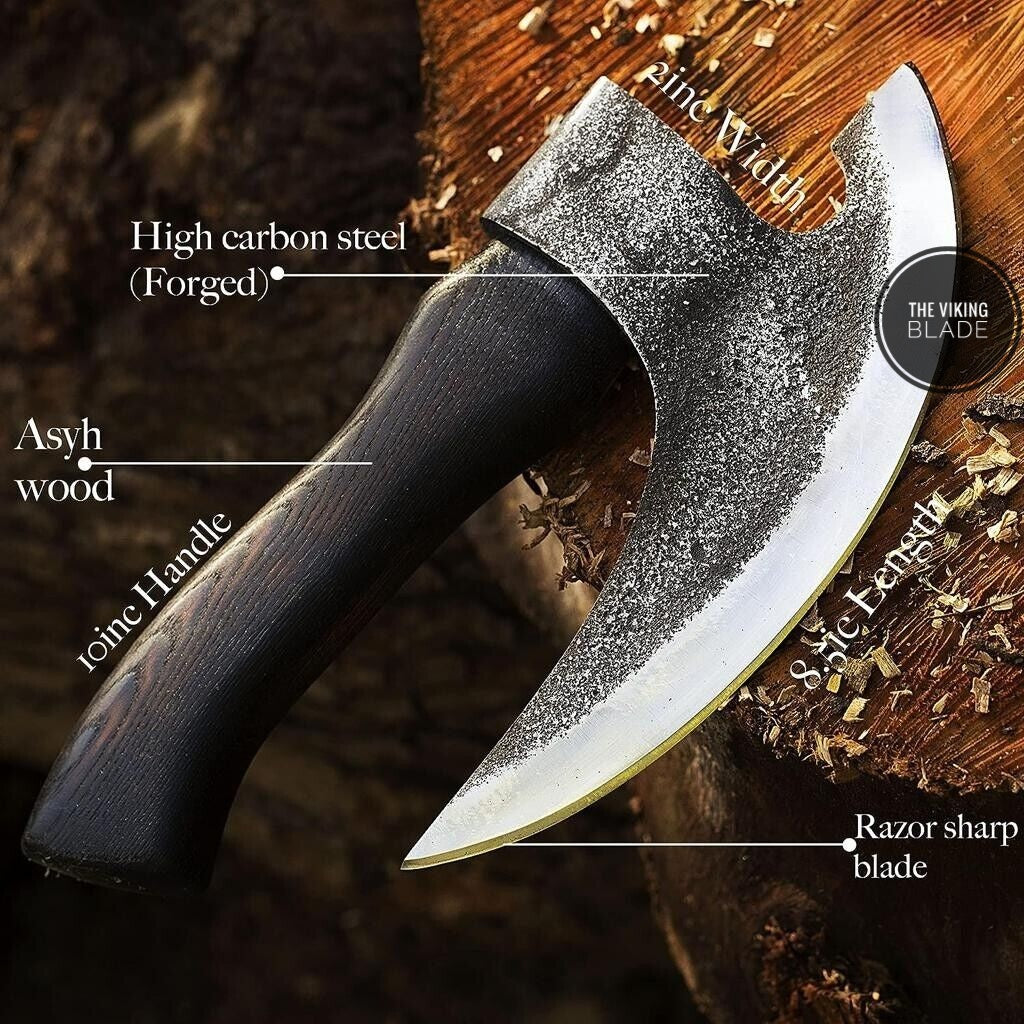HAND FORGED PIZZA CUTTER AXE Camping VALHALLA Bearded Axe Viking Axe W/Sheath