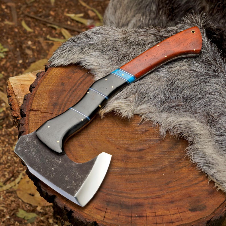 Includes a premium cow leather sheath for safe storage and transport. Whether you're a collector, outdoorsman, or looking for a one-of-a-kind gift, this axe delivers beauty, strength, and heritage in one extraordinary tool.