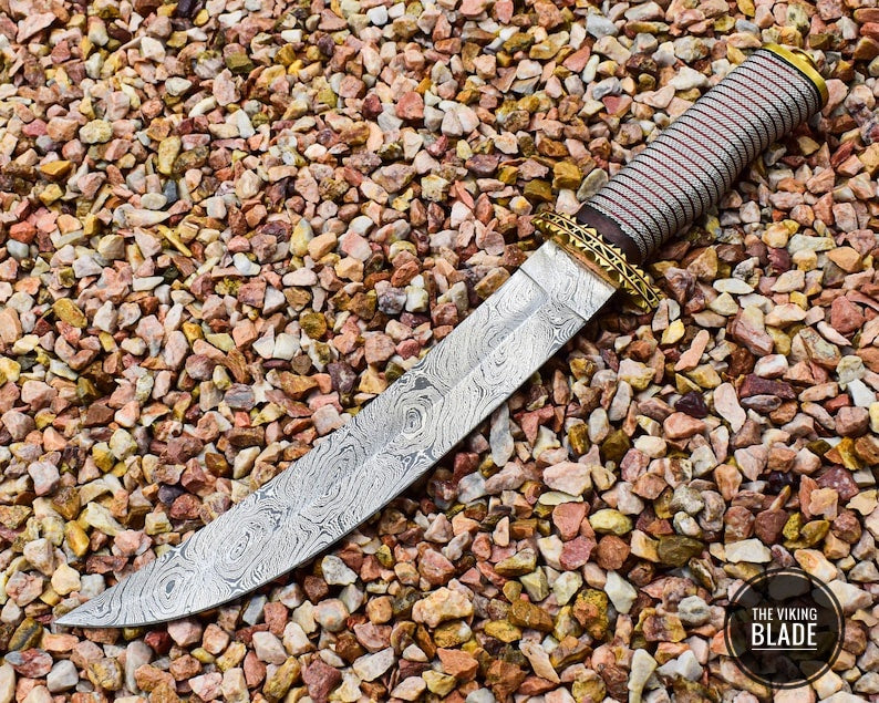 Handcrafted Damascus Steel Camping Knife For Collectors Spiral Copper &Stainless Steel Wire Sturdy Handle