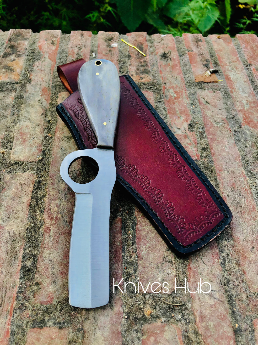 Handmade D2 Steel Bull cutter knife with leather sheath