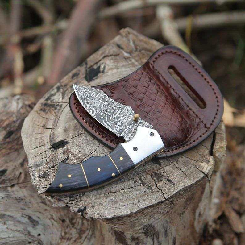 Handmade Damascus Best Folding Pocket Knife Blue Handle Knife